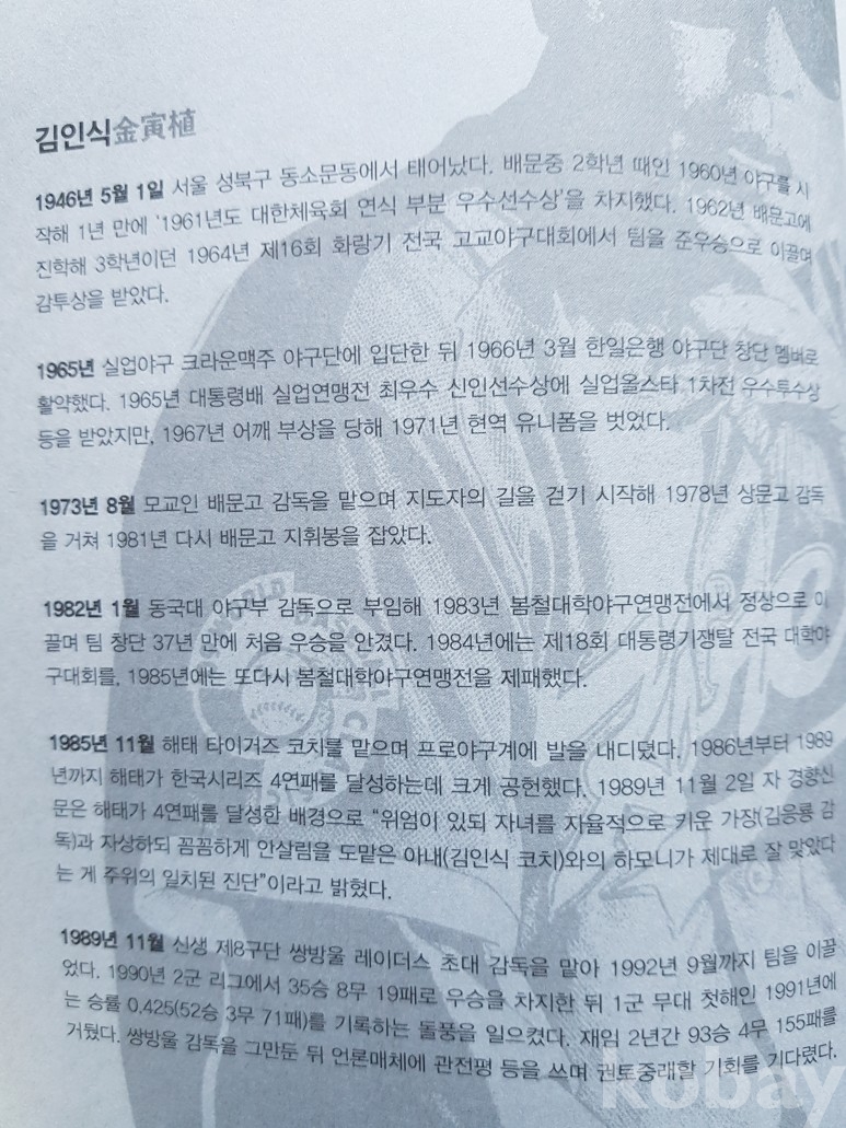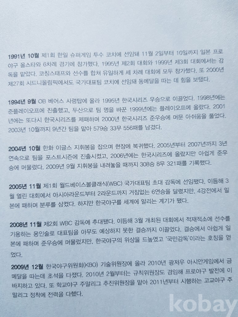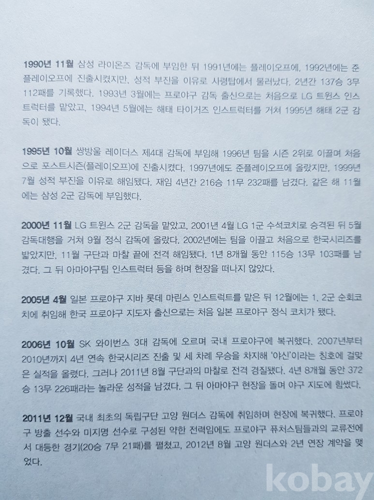 설명: 이 책은 대한민국 레전드 야구 감독으로 쌍벽을 이룬 감독 2명을 비교 분석한 프포야구 자료 로 인쇄사인 과 사진이 있는 책입니다.