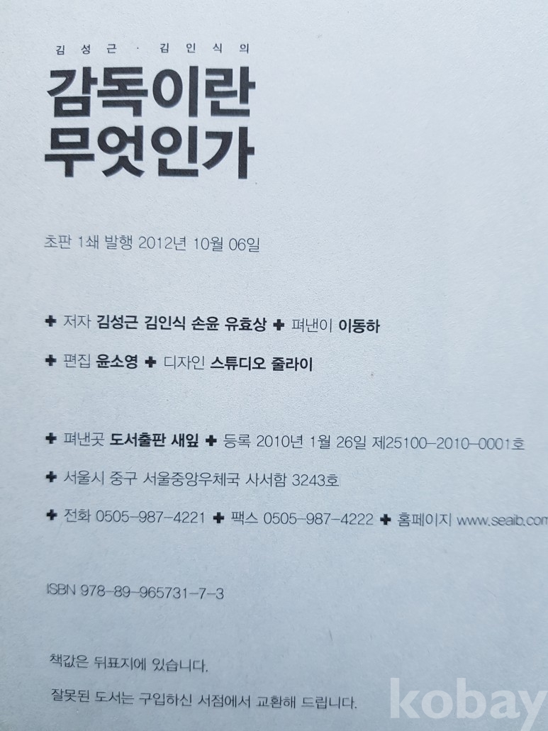 제목: 김성근 김인식 감독이란 무엇인가 야구 서적