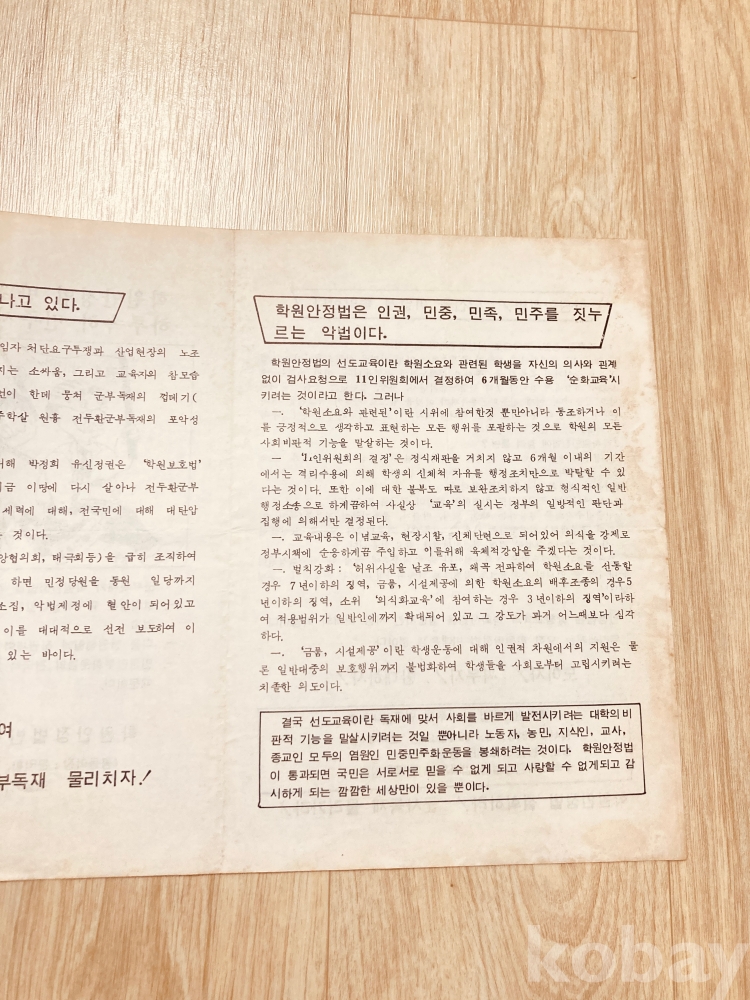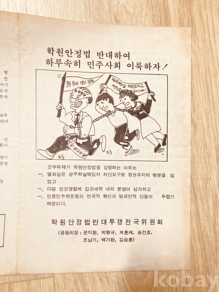 [민주화 운동 자료] 문익환 선생 등 "학원안정법 반대 전단지"