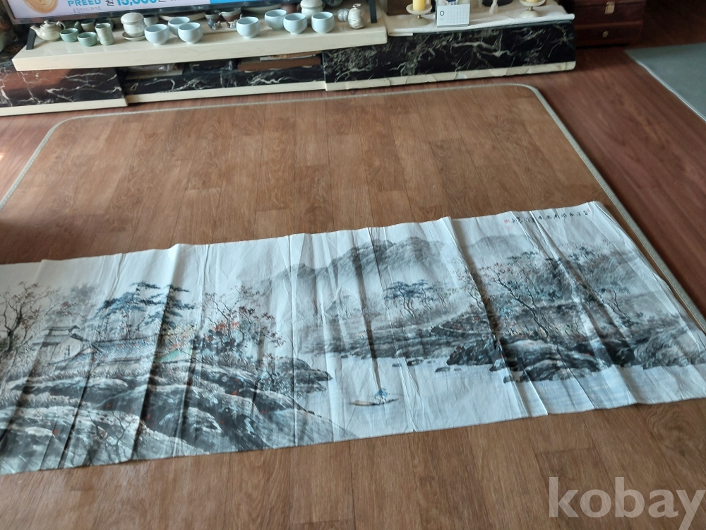 정곡 정영대 화백의 대형 산수화로 정곡 화백은 국전에서 금상을 비롯한 많은 수상 경력을 갖고 있는 유명화가 입니다. 그 분의 작품 중에서도 완성도와 예술성이 뛰어난 작품성 미사용 형태미 장식성 수집용으로 좋습니다.