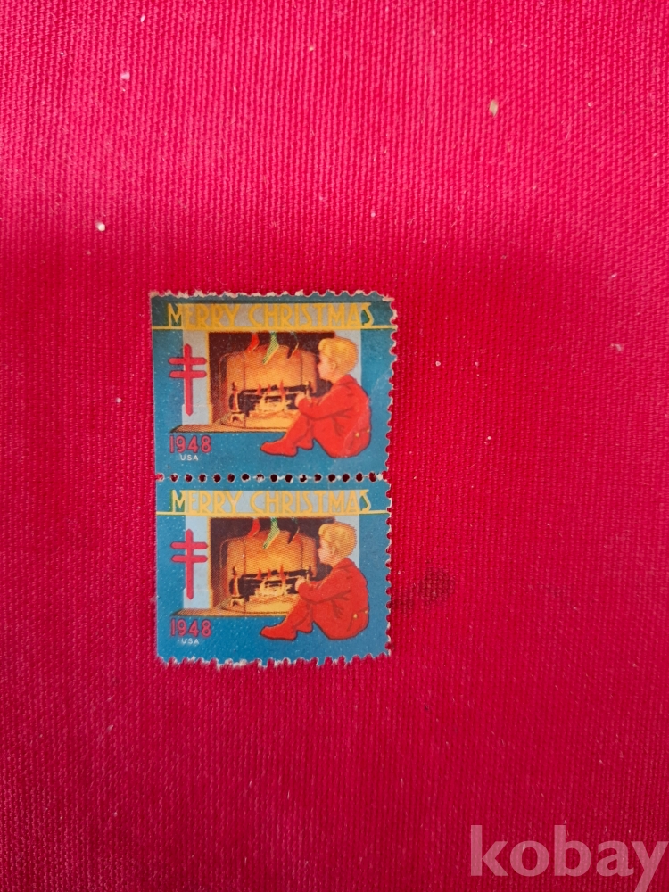 미국 크리스마스 씰---1948년 두 장 ----실물 이미지 그대로 있습니다