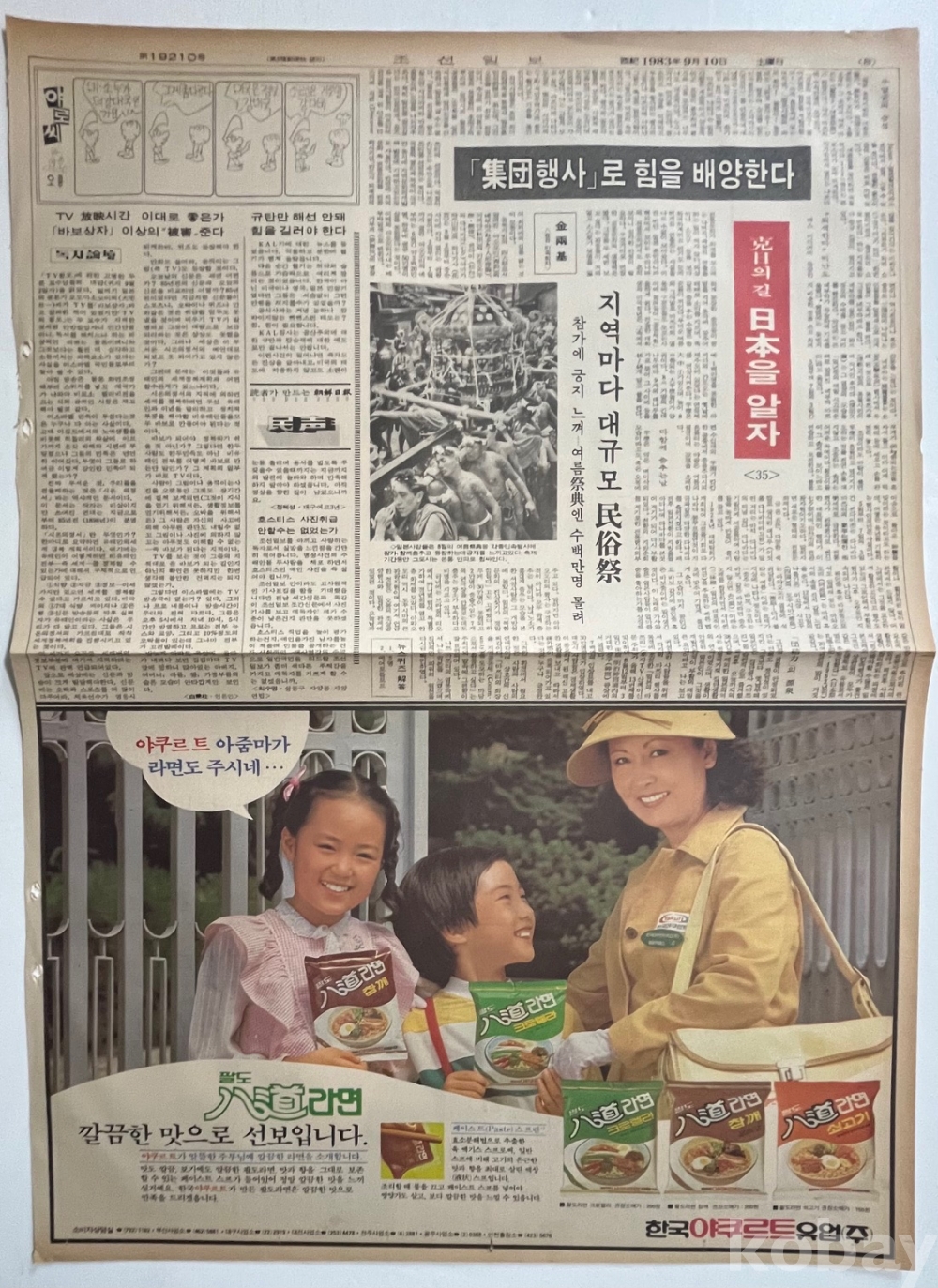 팔도라면 광고가 실린 조선일보 낱장입니다.
