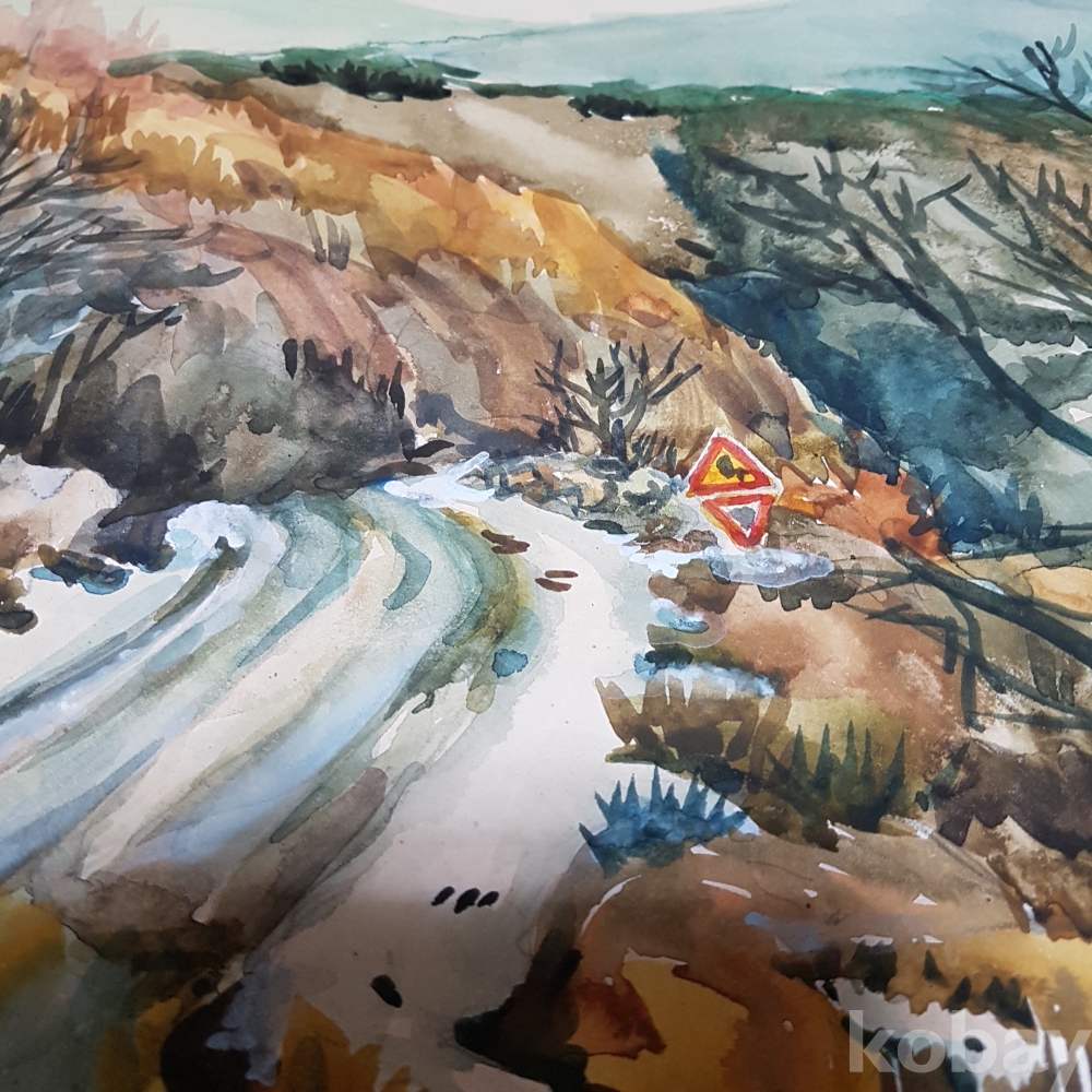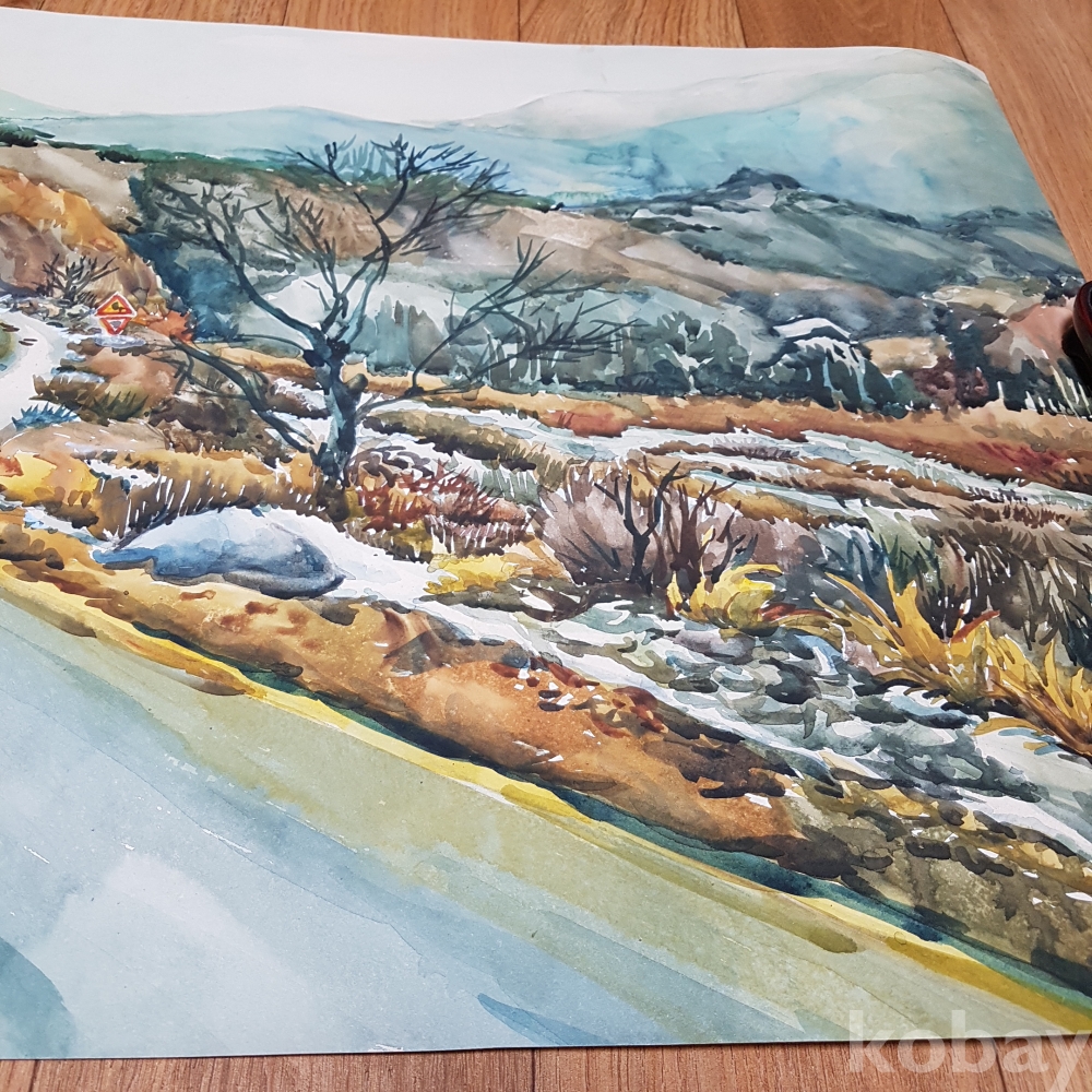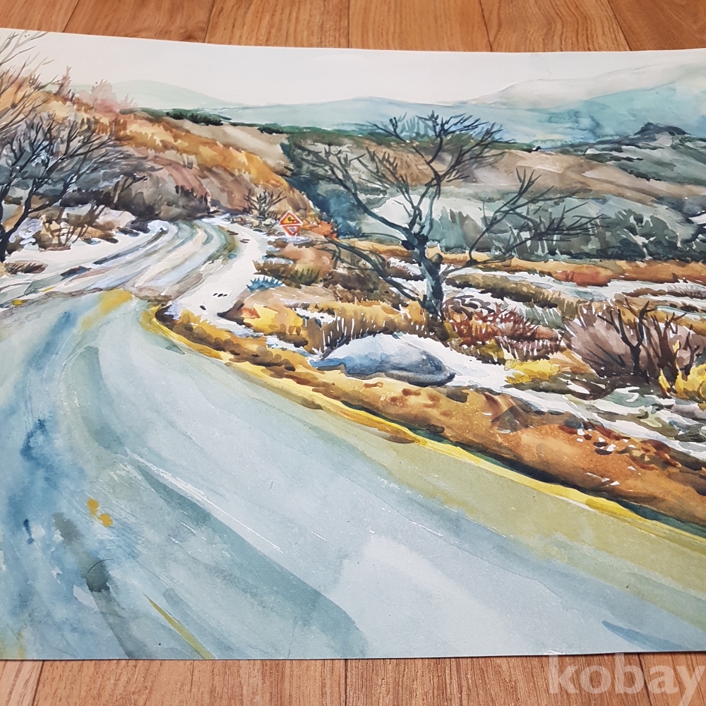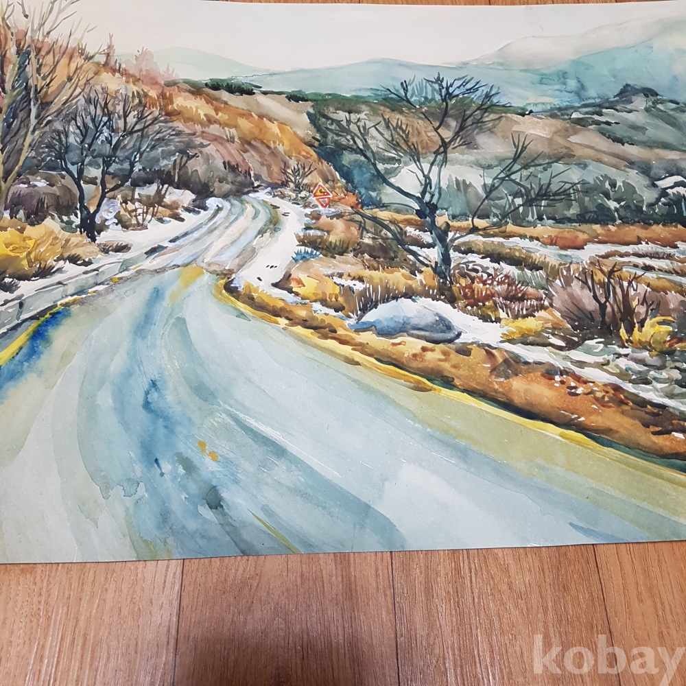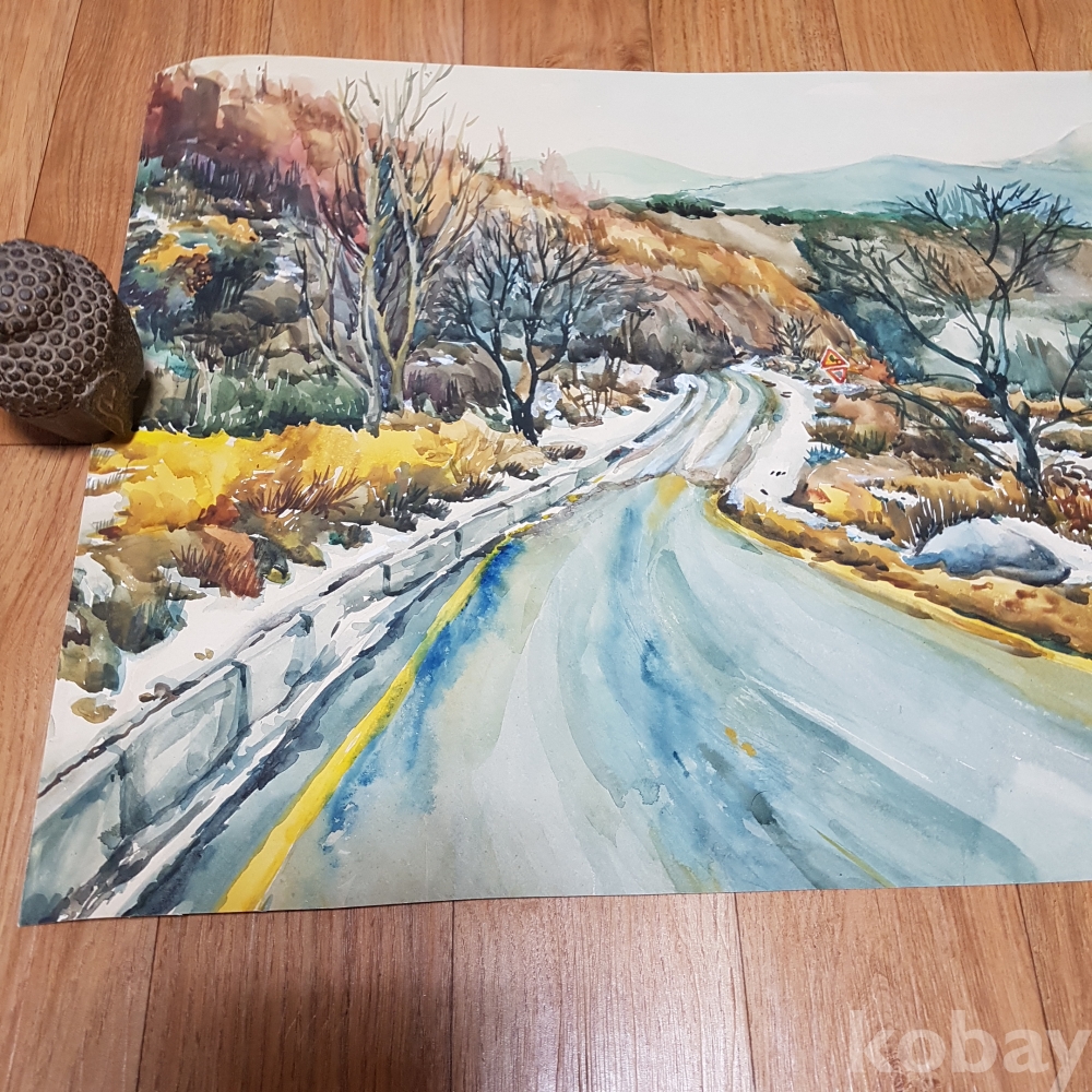 잔설이 보이는 수채화1점