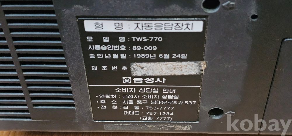 | 제조국 | 한국 | 연대 | 1980년~1999년 |