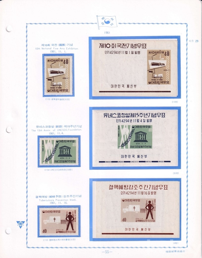 - 한국우표앨범 모음展 - 1961년 제10회 국전 기념 우표 포함 6종