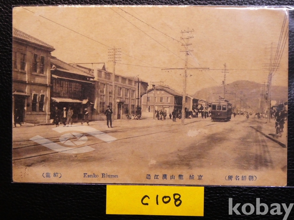 ▣근대한국엽서(진본): 경성, 용산의 한강통 거리 모습, 통행하는 전차, 용산 거리의 옛 모습, 매우 귀함/1매.