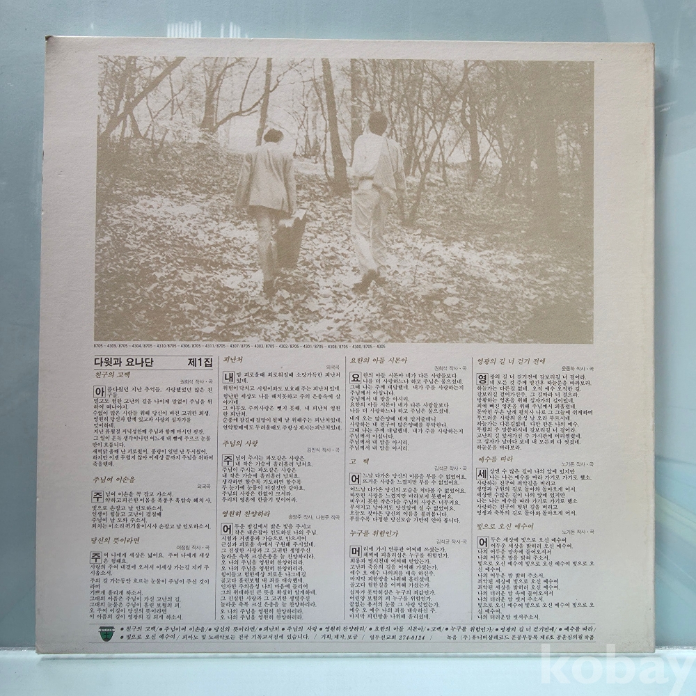 상품 설명 | Side A 1. 친구의 고백 2. 주님이여 이손을 3. 당신의 뜻이라면 4. 피난처 5. 주님의 사랑 6. 영원히 찬양하리 Side B 1. 요한의 아들 시몬아 2. 고백 3. 누구를 위함인가 4. 영광의길 너 걷기전에 5. 예수를 따라 6. 빛으로 오신 예수여 |