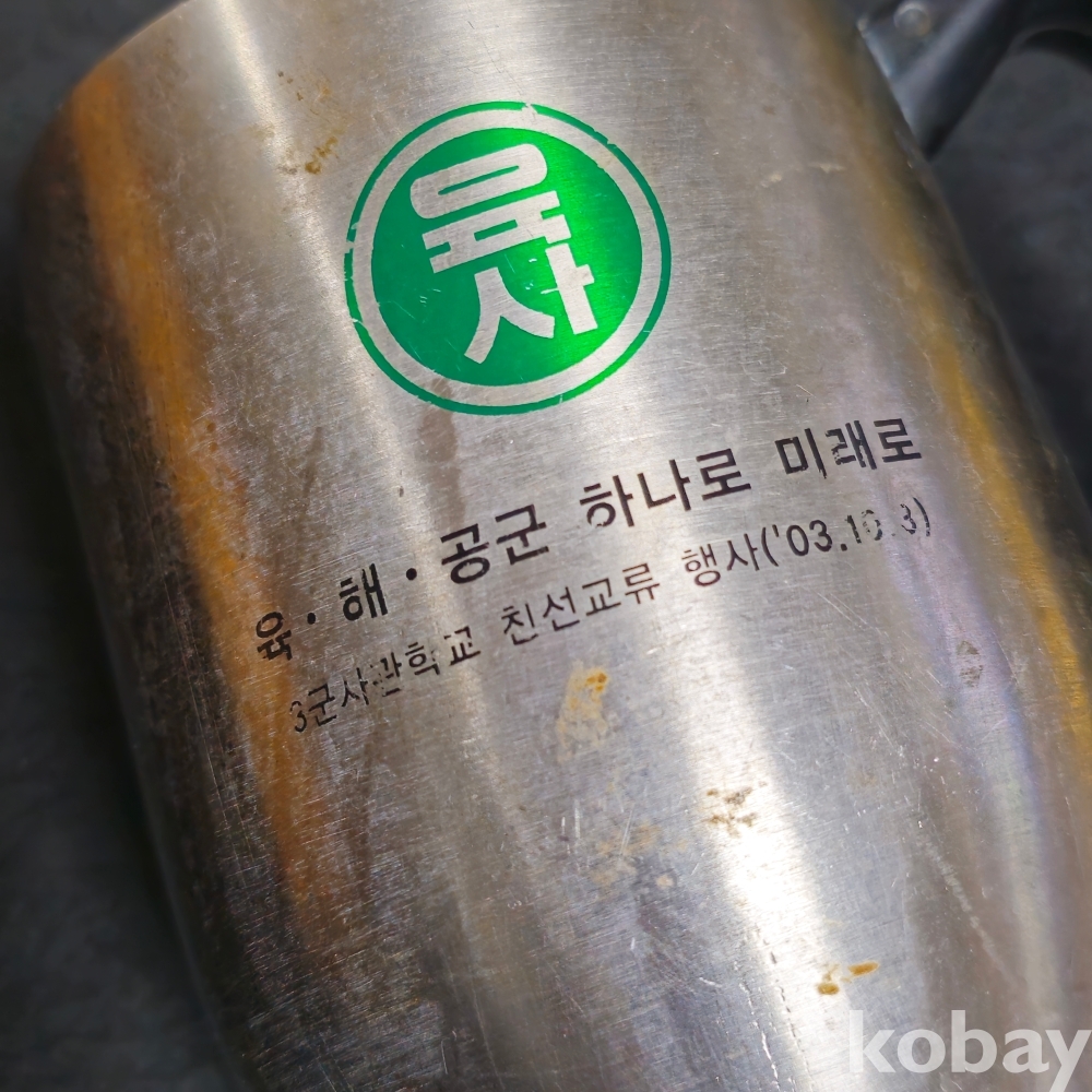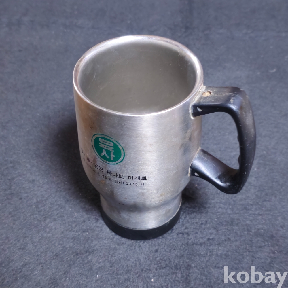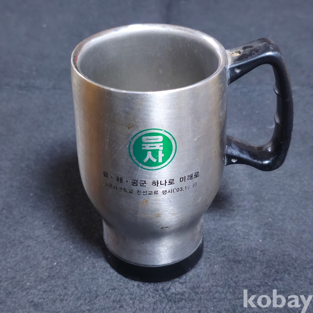 (((군자료))) 2003 육.해.공군 하나로 미래로 3군사관학교 친선교류행사기념 스텐 손잡이컵