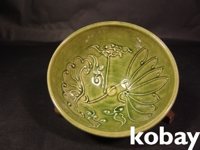do3754 길주요(吉州窯) 녹유양각 연화문다완(蓮花紋茶碗)