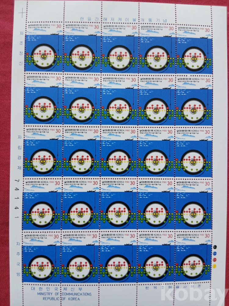 우표: 한일간 해저 케이블 개통 기념 우표 전지 (1980년 액면가 750원)------미사용으로 상태 아주 양호 합니다