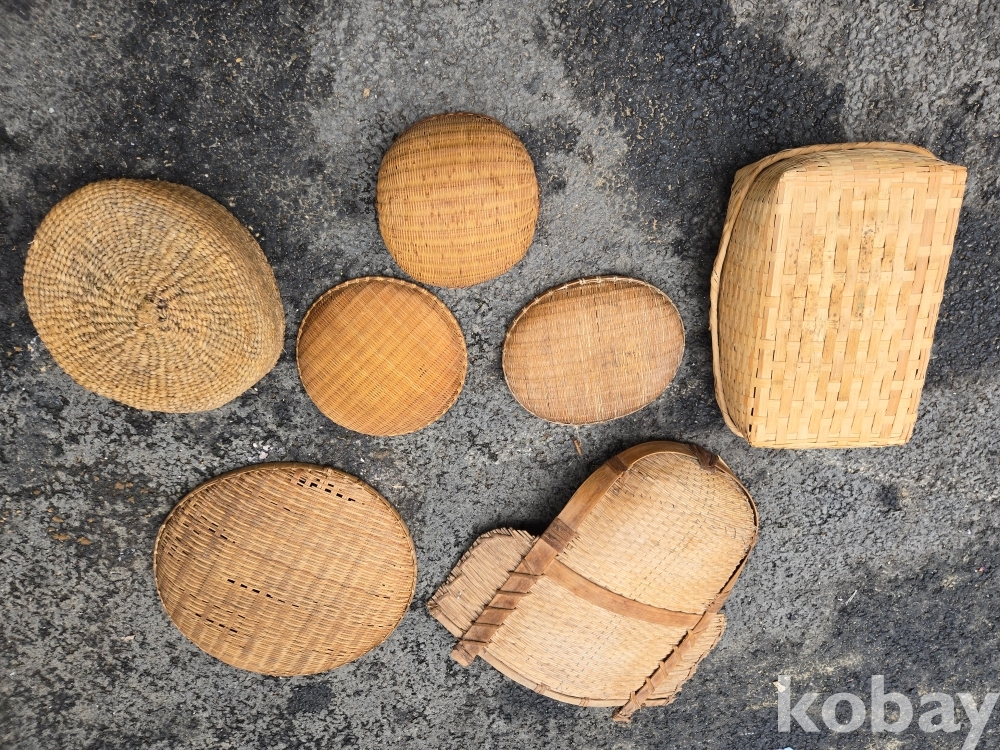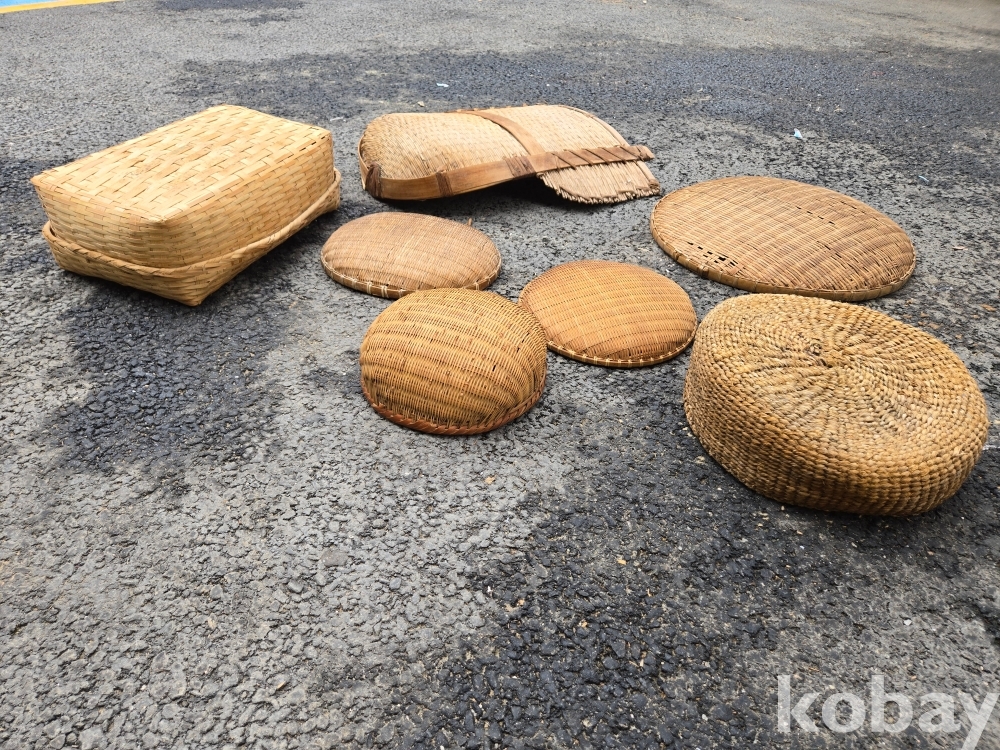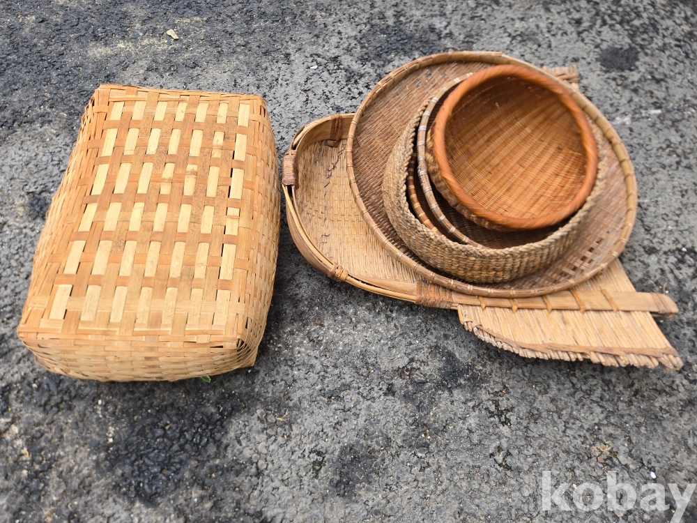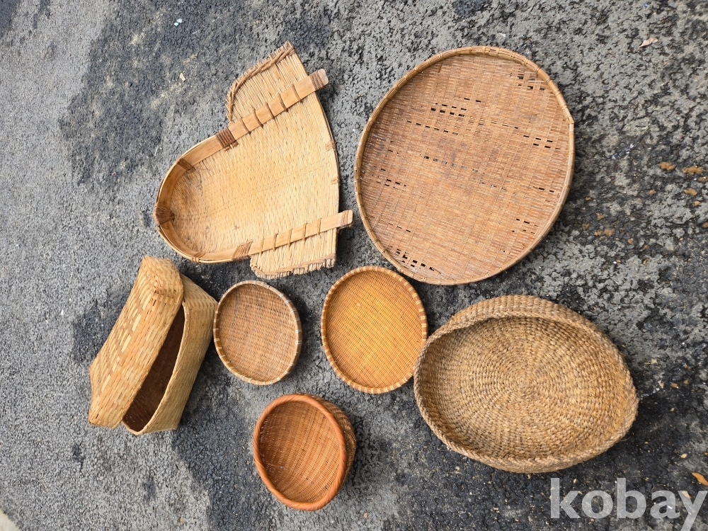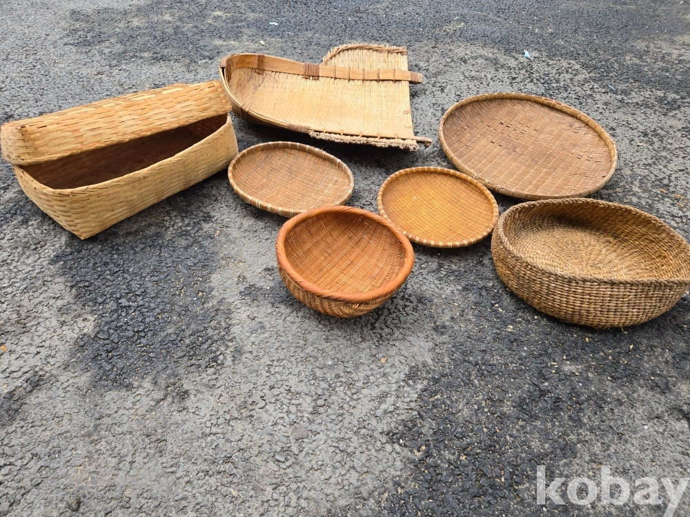 대나무로 만든 키, 체, 사각 바구니, 멍석 바구니등 입니다.