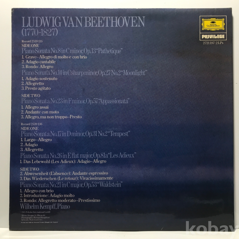 LP 35,050-62 Beethoven Sonatas Moonlight - Wilhelm Kempff_2LP . ` 65 수입 자켓 EX+ 알판 EX+ EX