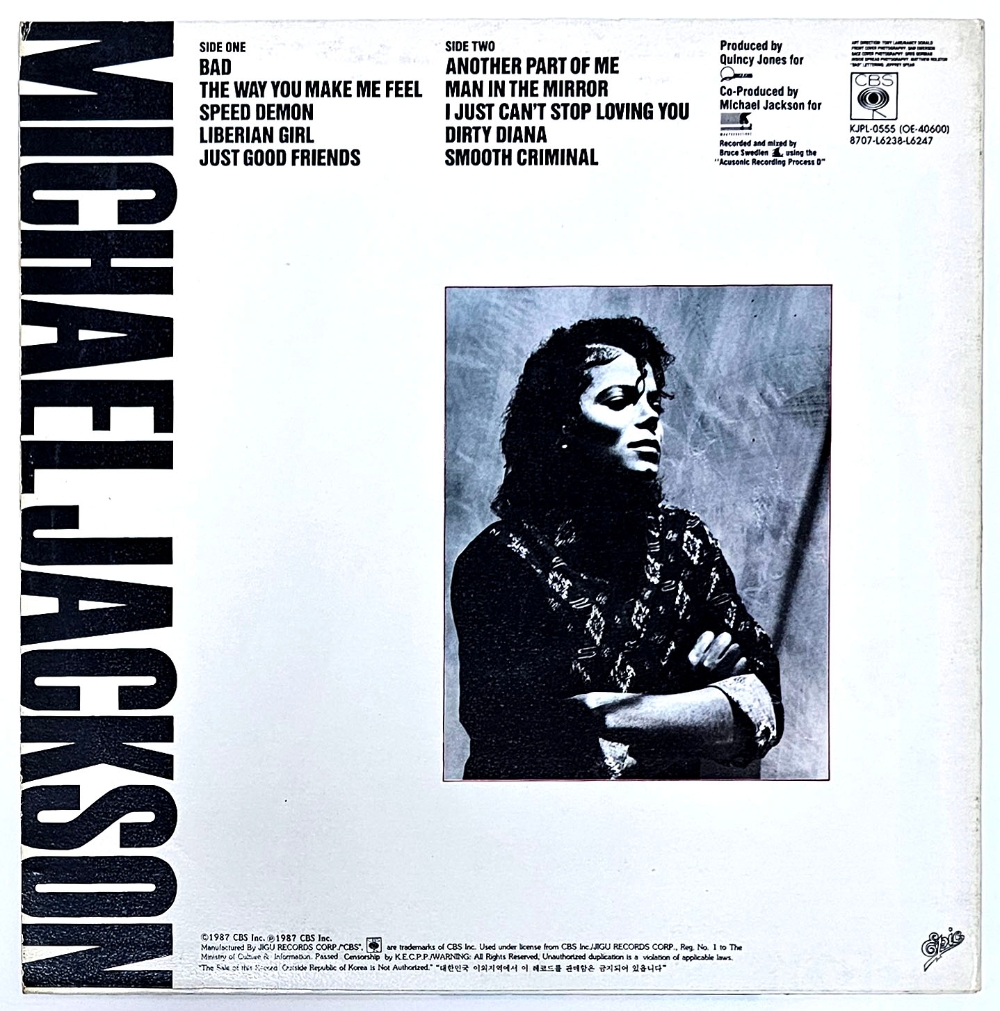 물 품 명 | 마이클 잭슨 Michael Jackson / BAD / 1987년 |