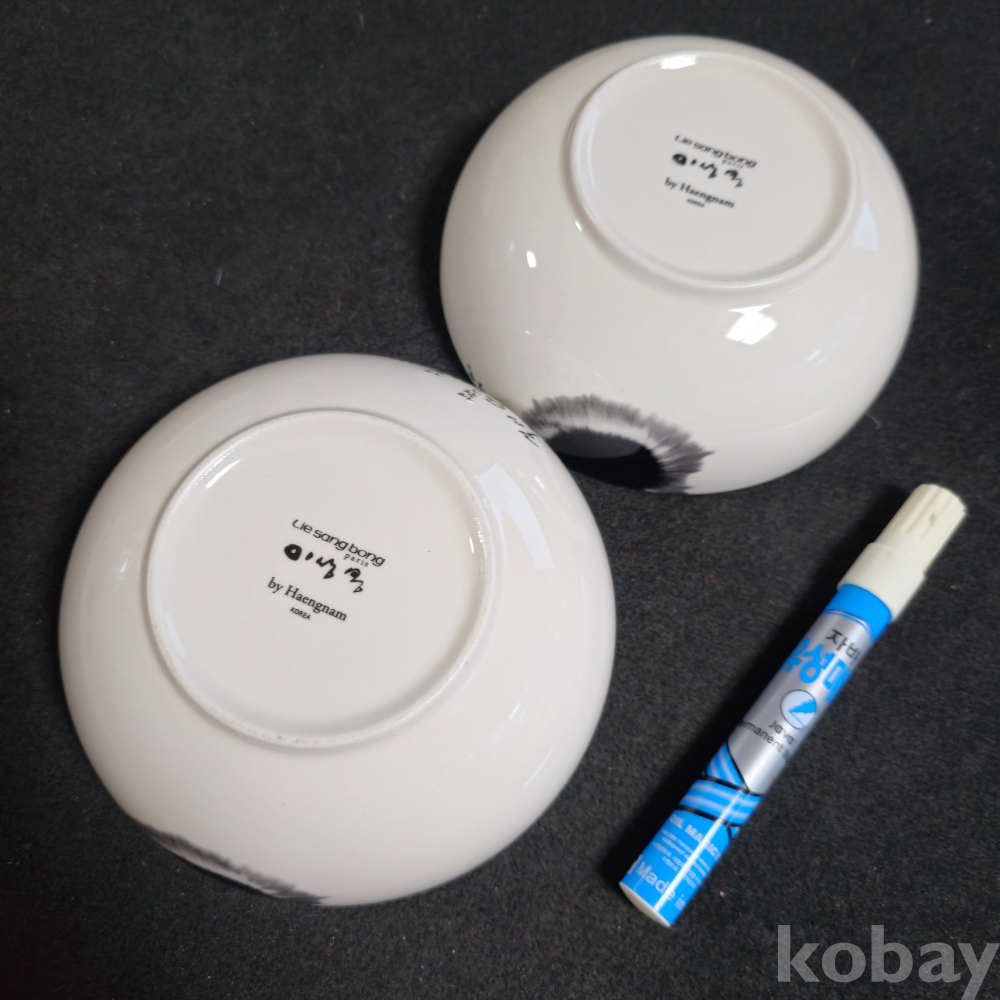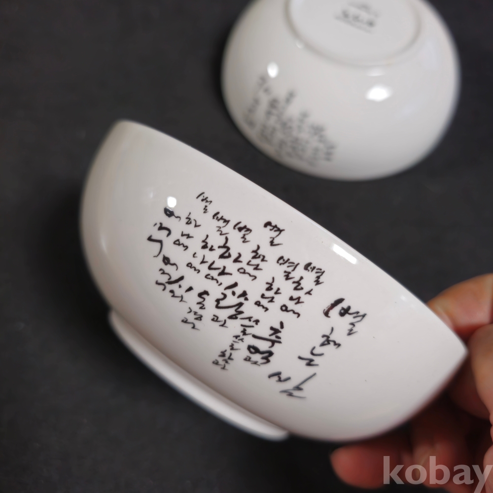 (((근현대사자료/도자기컵))) 오래전 윤동주시인의 별헤는밤 문구담긴 도자기 대접 2개 (이상봉교수/행남사)