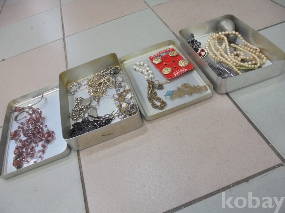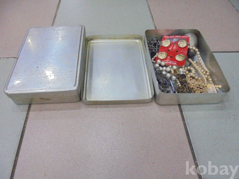 뱅가드 고급단추4점과 진주 목거리 옥목거리 스텐류목거리 병따개 접개칼 많은 악세사리등등 담고있는 뚜껑있는뉴무도시락 2점