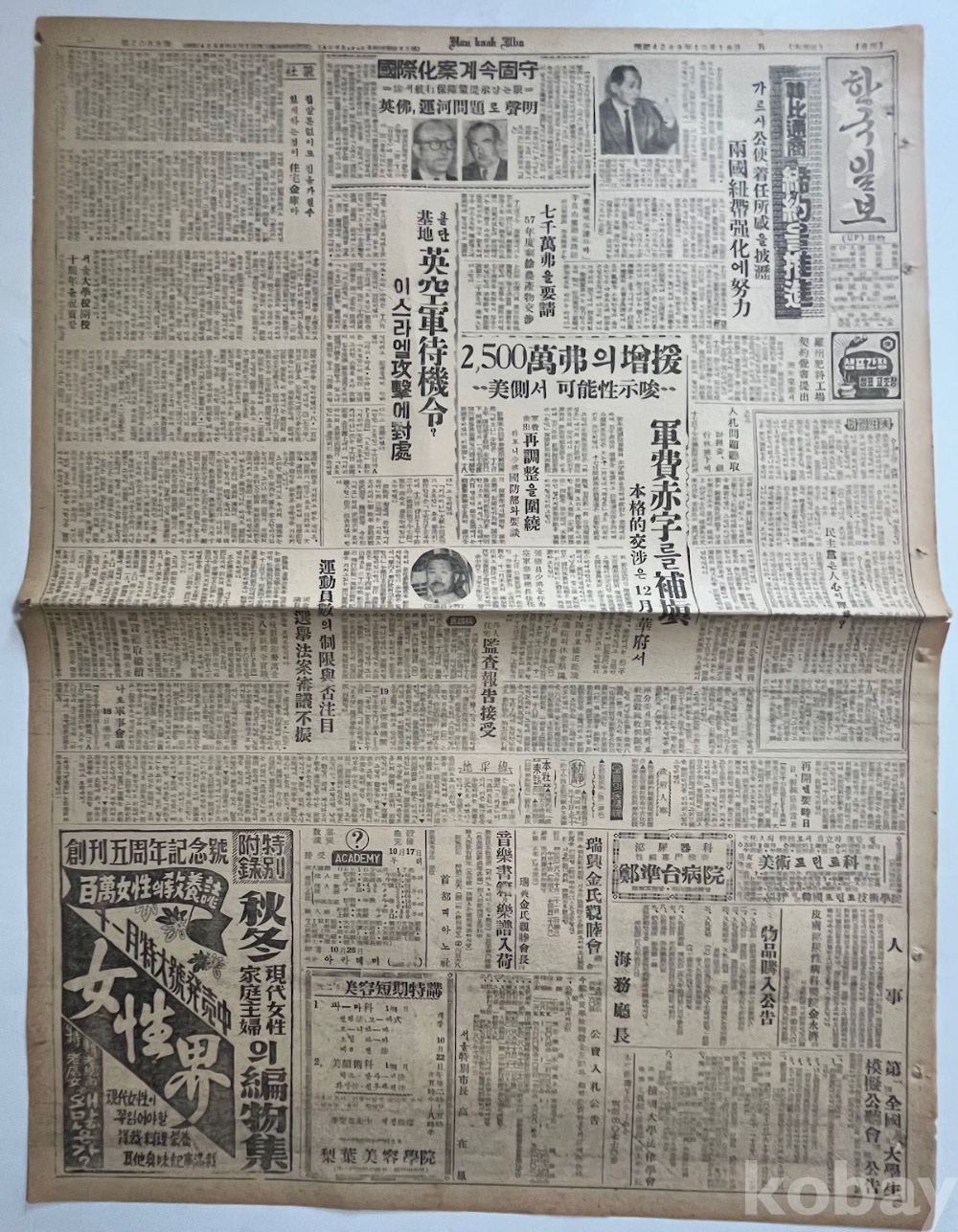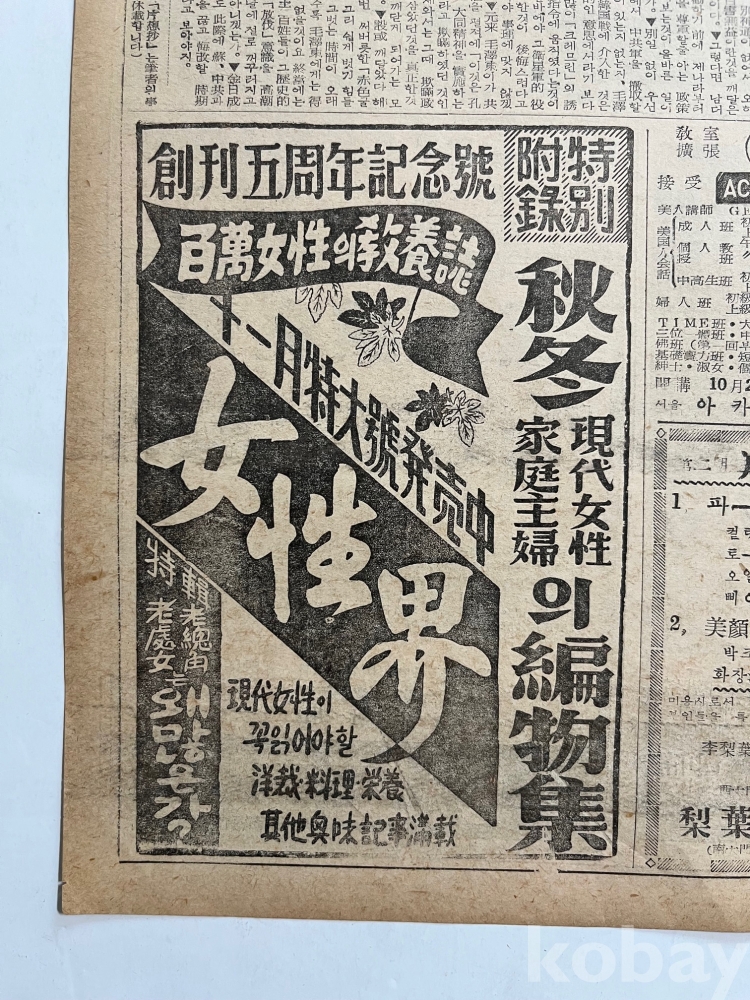 여성잡지 광고가 실린 한국일보 낱장입니다.