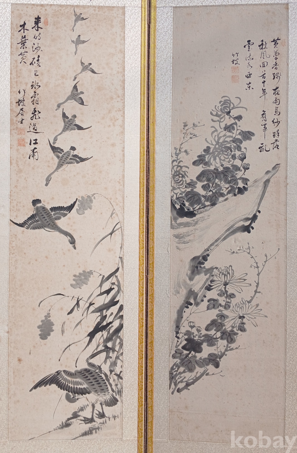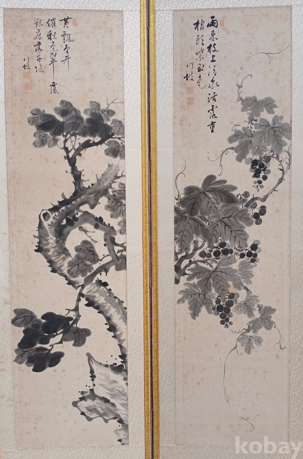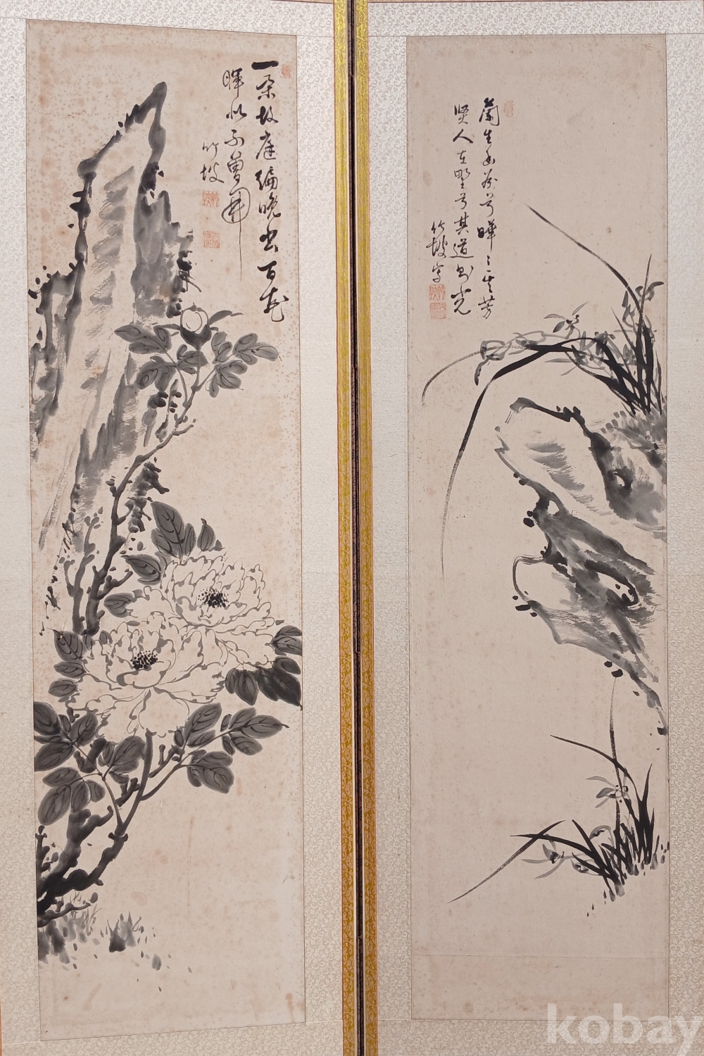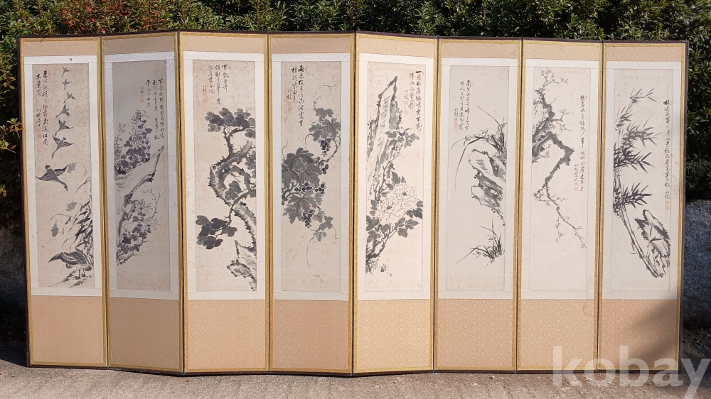 구한말에서 일제강점기 시대에 활동하신 '죽파 윤영환' 선생님의 문인화 8폭 병풍입니다.