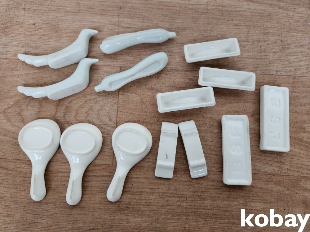 여러 가지 모양의 수저 받침 도자기 입니다.