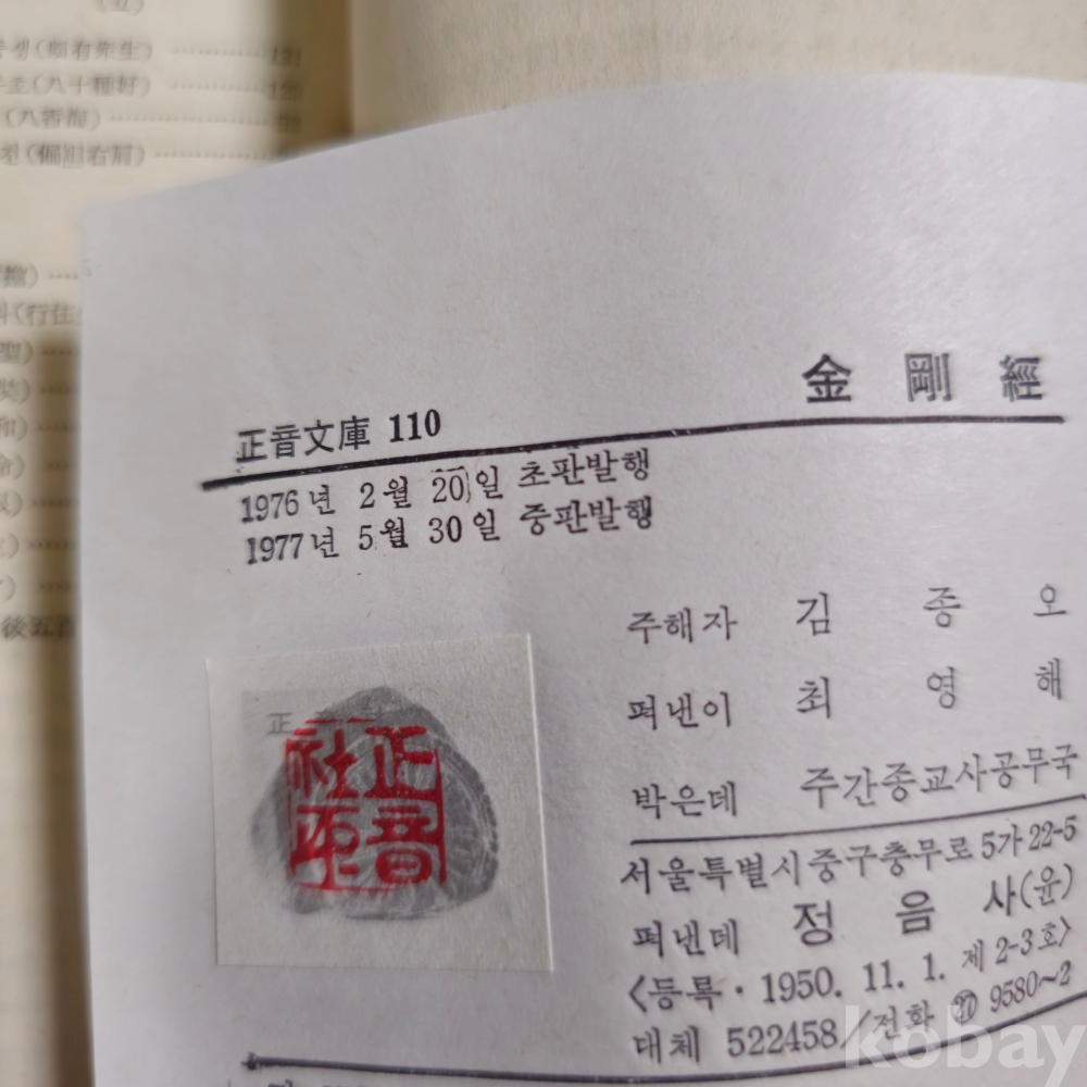(((천원경매))) (((오래된책/서적))) 金剛經 - 김종오 주해 (1977년 중판)