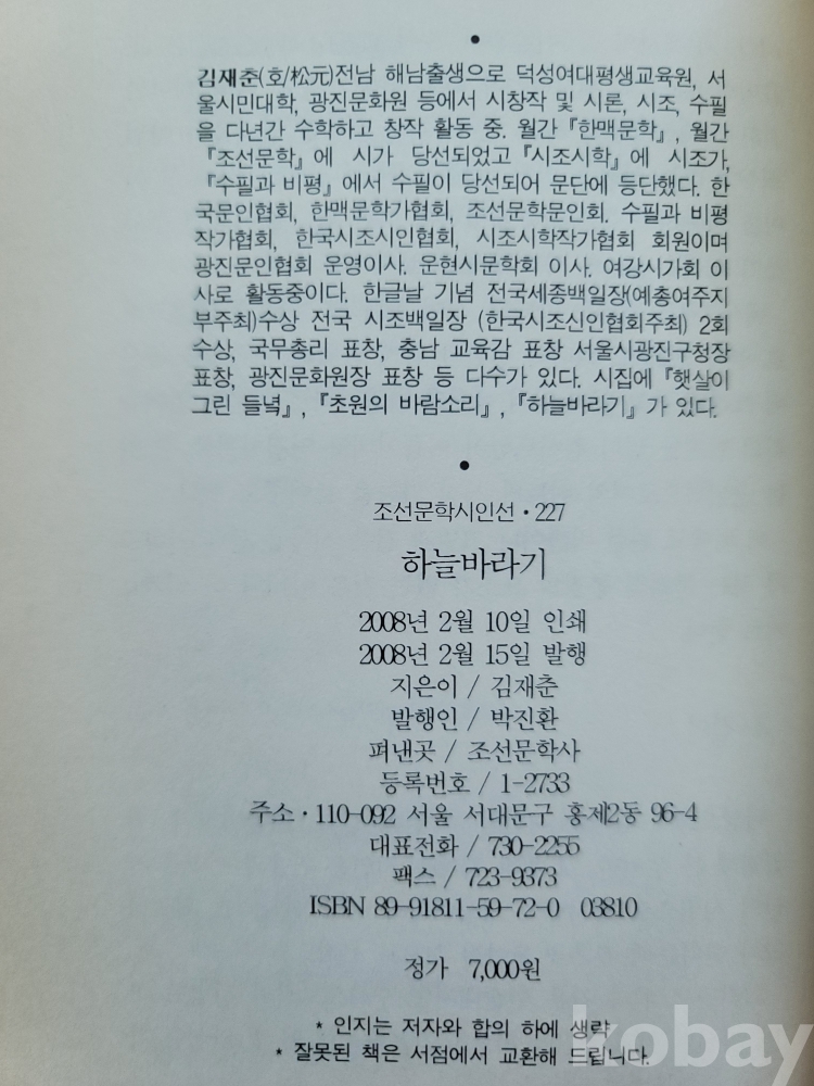 김재춘(전라남도 해남) 시집.