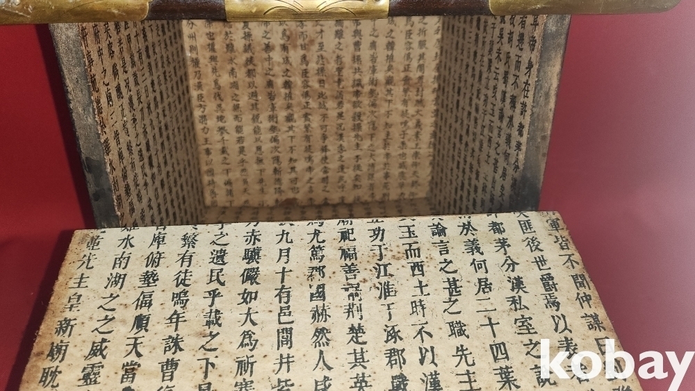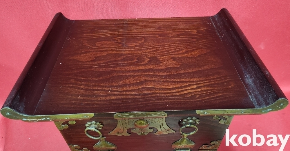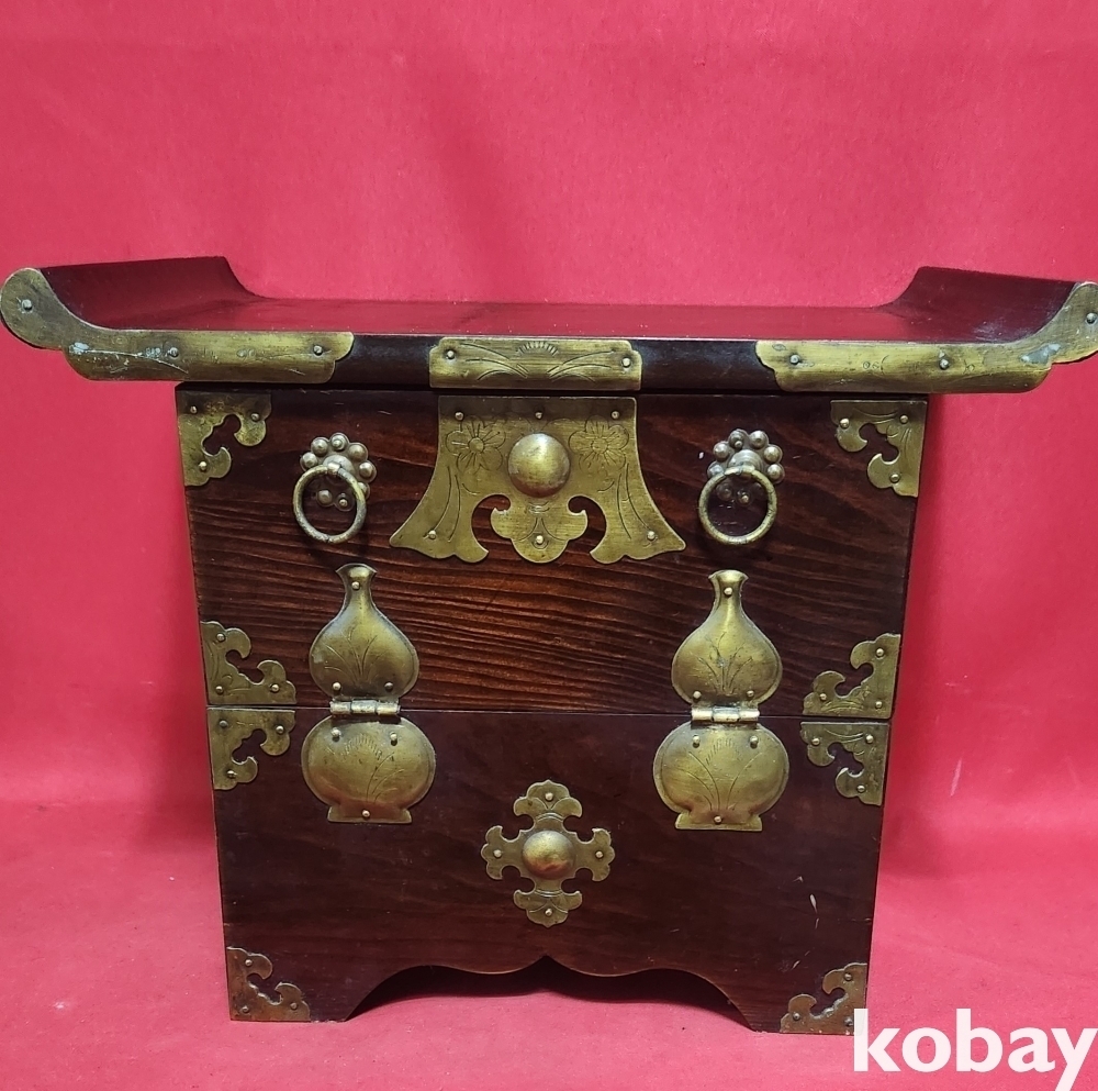경첩이 청동으로 장식된 작은 장식용 반닫이입니다,