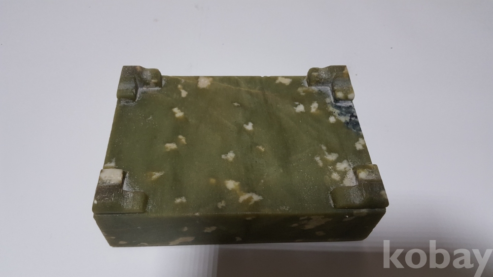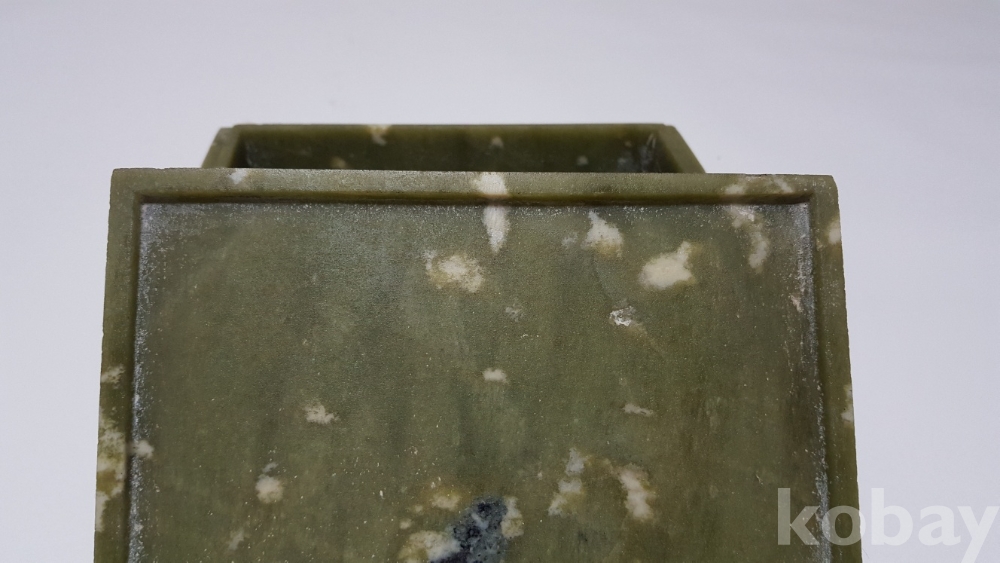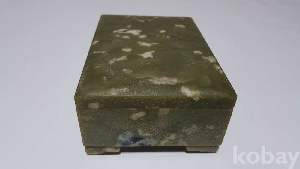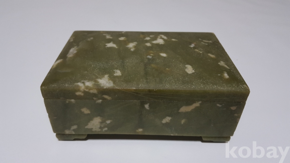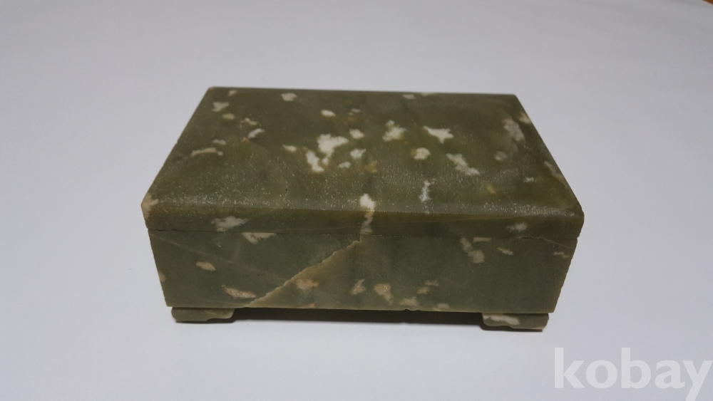 전통생활사 전래품 石공예품/선조들의 삶과 유산,담배가 눅눅하거나 건조해지는것을 막기위해 뚜겅이 있는, 무늬 옥돌로 만들어진 특별한 사각 담배합입니다.미사용이고 다리 받침은 붙임이 아니고 한살입니다.
