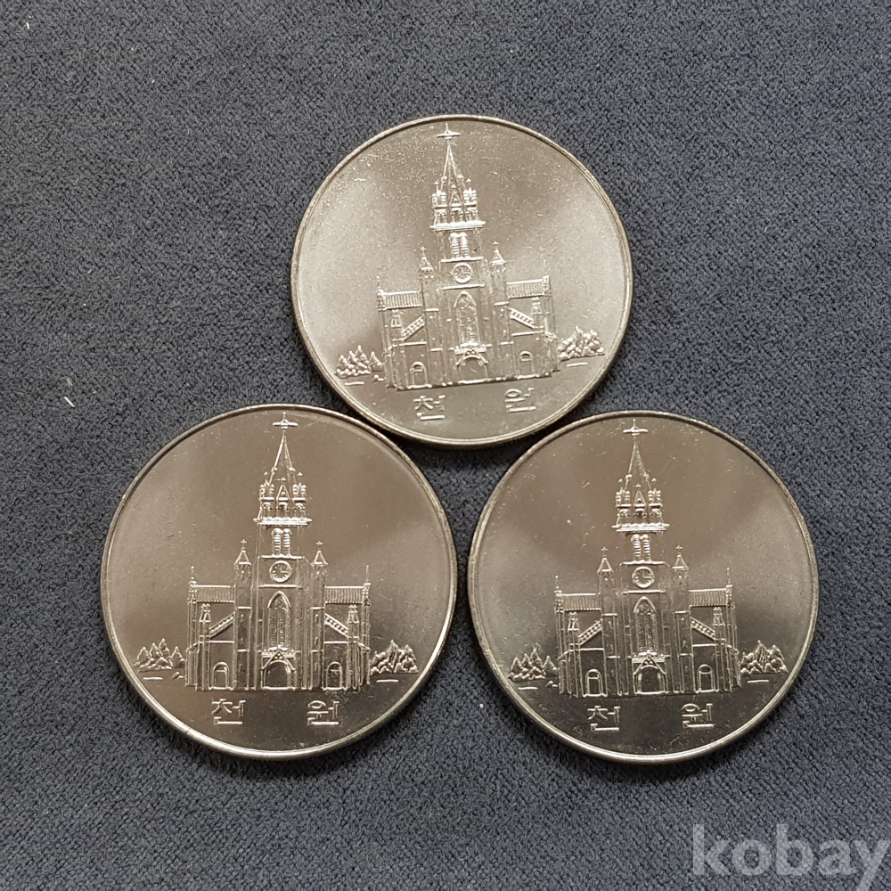 - 관봉해체분/ 천주교 전래 200주년 명동성당 천원 기념주화 - 3개 일괄