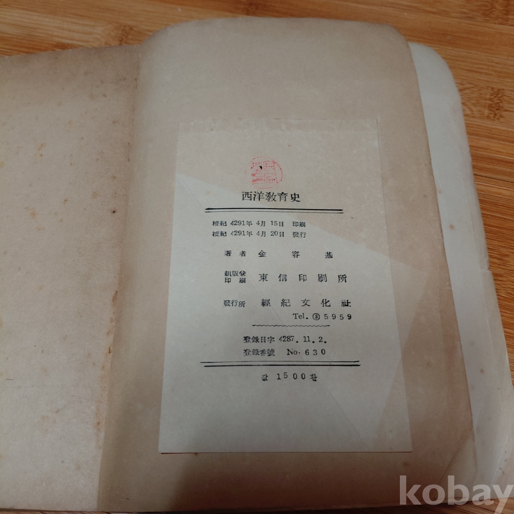 단기4291년 서기1958년 서양교육사 경기문화사 발행 올려드립니다