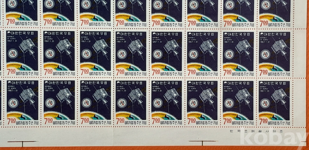 1967년 1월 31일 발행 UIT 가입 15주년 기념 50매 전지 입니다.