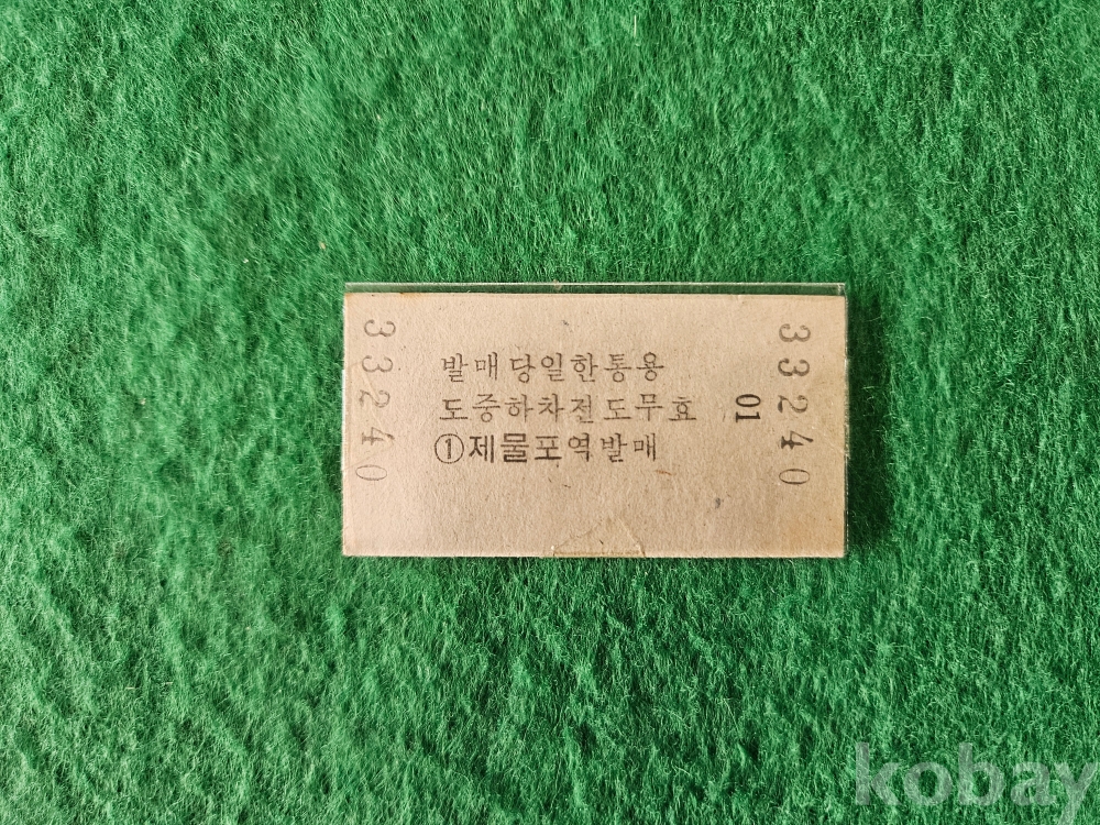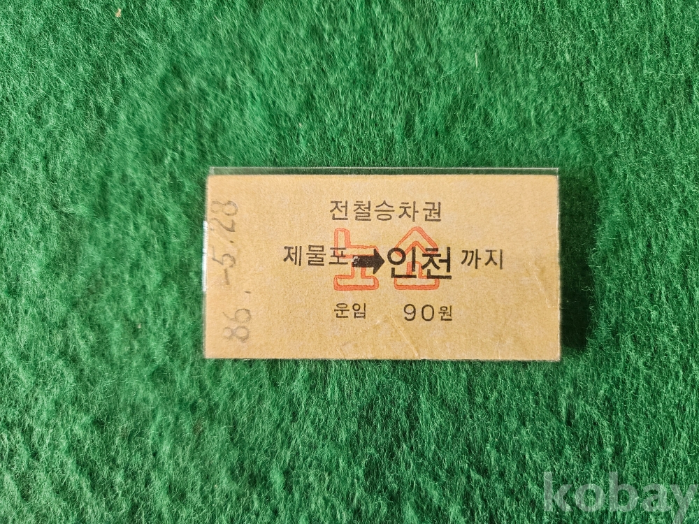 - 전철승차권 " 제물포 - 인천까지 " 운임 90원