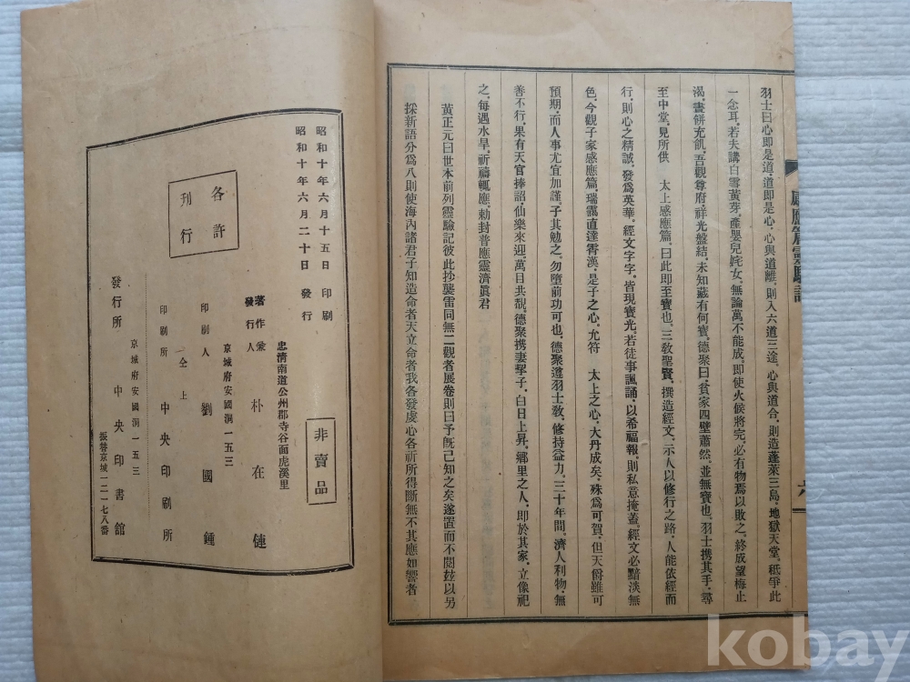 1935년에 경성의 중앙인서관에서 간행된 도교관련 서적인 태상감응편太上感應篇