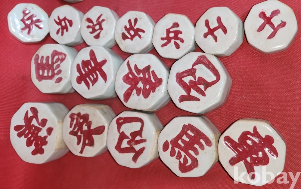 도자기로 만든 8각 장기알로 숫자는 맞읍니다,