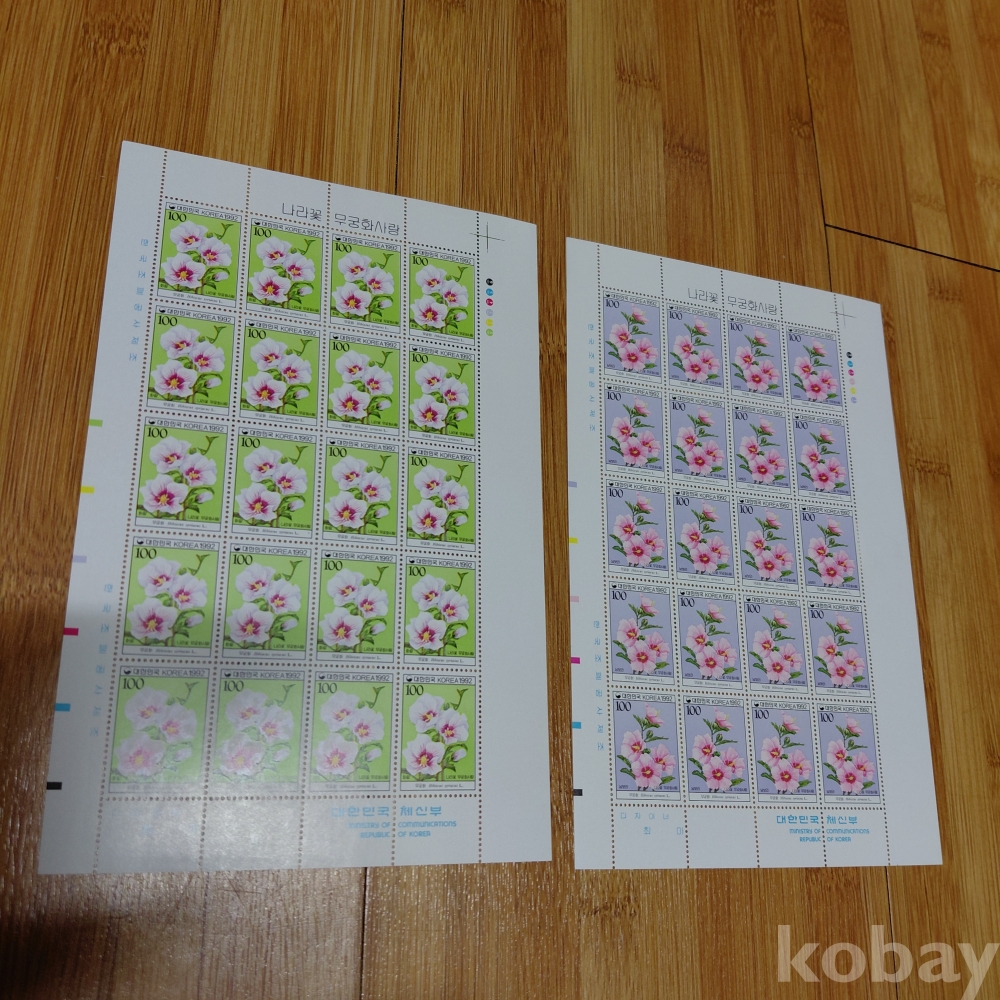 나라꽃 무궁화시랑 전지우표 두장 한세트 올려드립니다