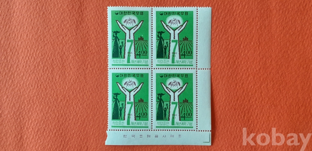 식량증산 7개년 계획 기념 4매 명판 입니다.