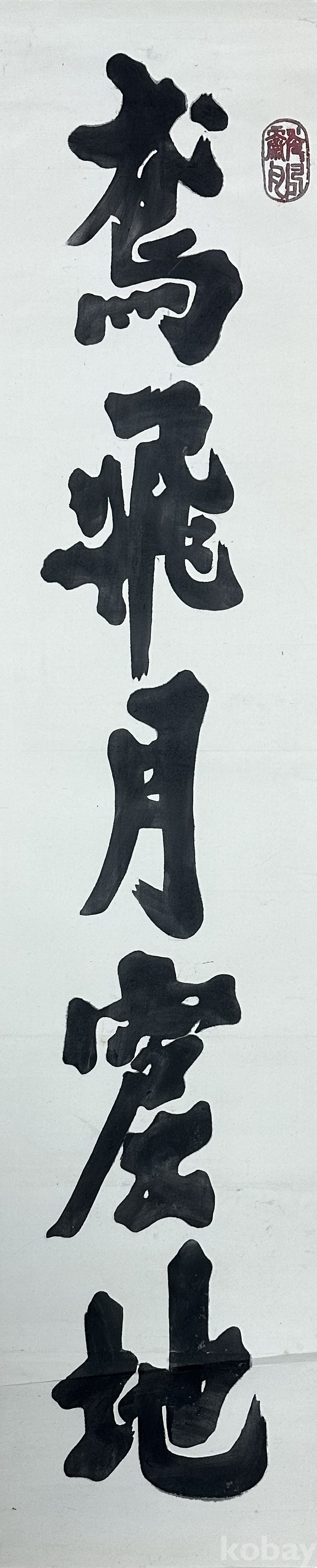 ‘사비월한지(鳧飛月寒地)’는 “물오리가 달 아래 차가운 땅 위로 날아든다”는 의미의 한시적 시구로, 달밤의 고요한 정취와 자연의 생명력을 함께 담아내고 있습니다. 붓의 힘찬 운용과 단아한 먹색 대비가 돋보여, 전통 서예의 여백미와 절제된 미감을 느낄 수 있는 작품입니다. 한지에 먹으로 쓴 순수 서예 족자의 멋을 담고 있습니다.