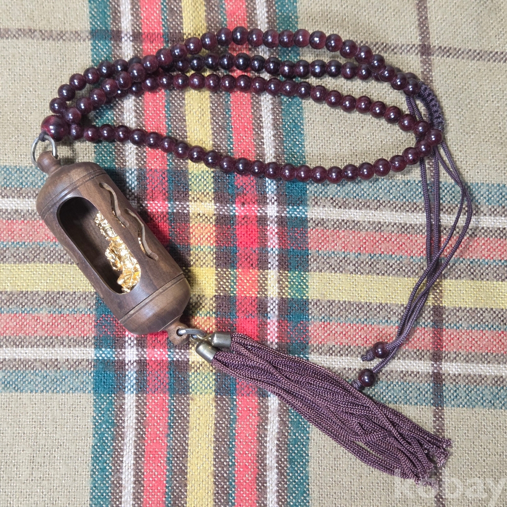 대추나무조각 관세음보살 소형 불감이 장식된 천연 자단 구슬 재질의 국산 염주, 장주입니다.