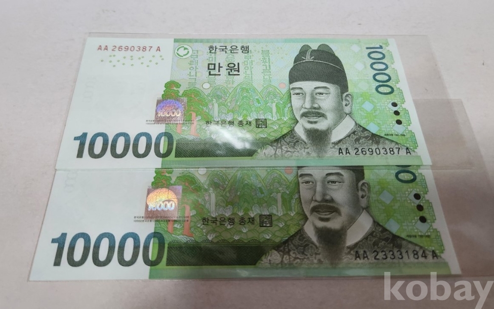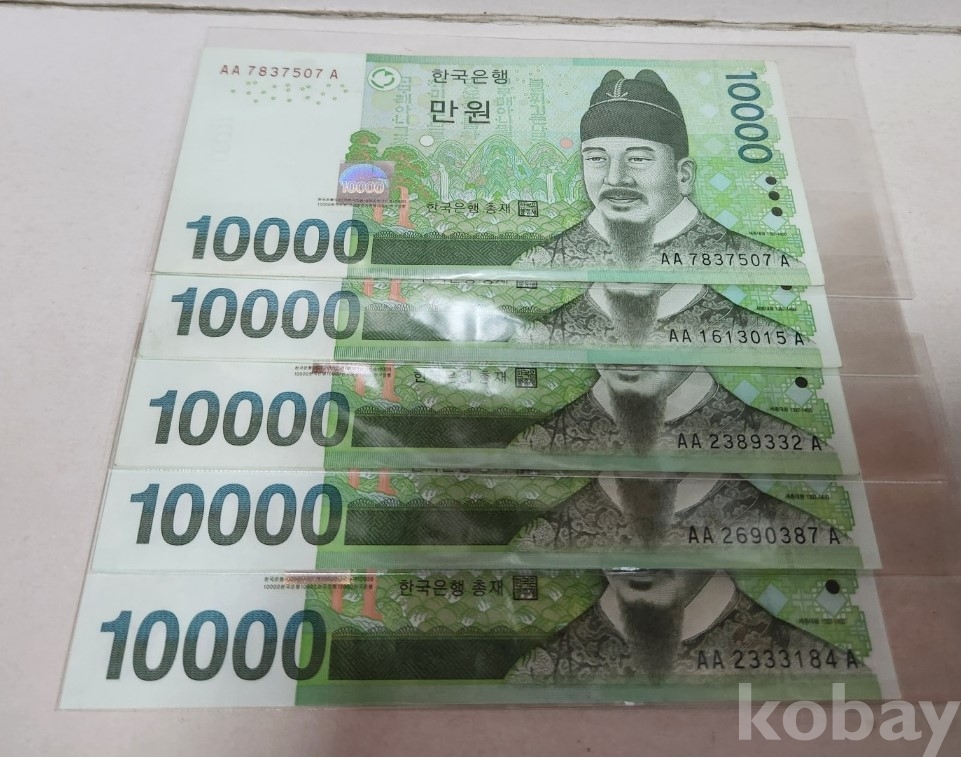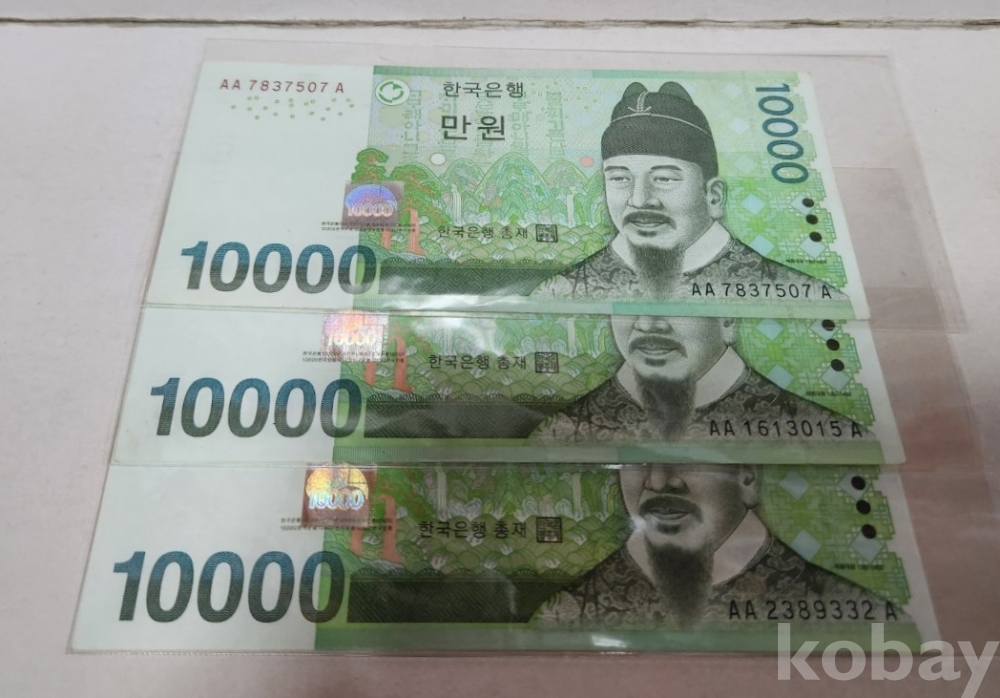 -대한민국 6차 만원 AAA 트리플기호 미사용 2장, 사용제 3장 일괄 입니다.