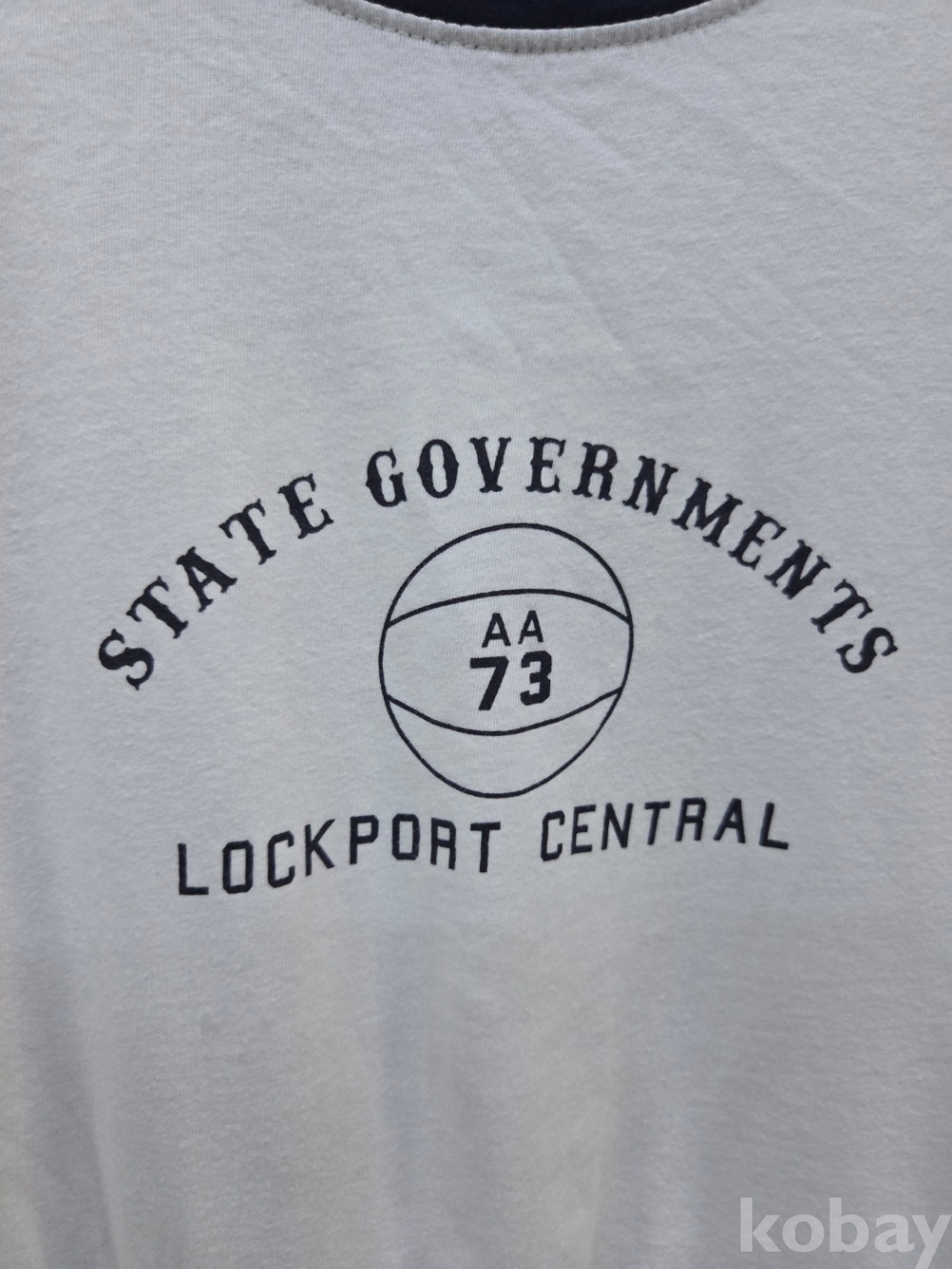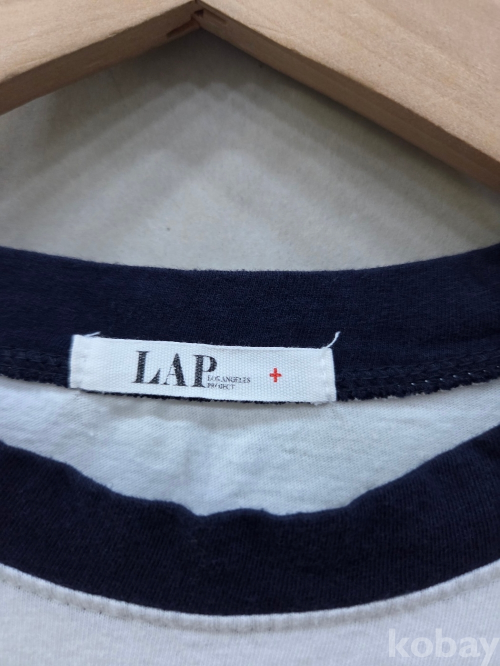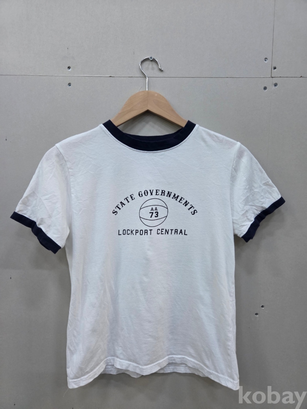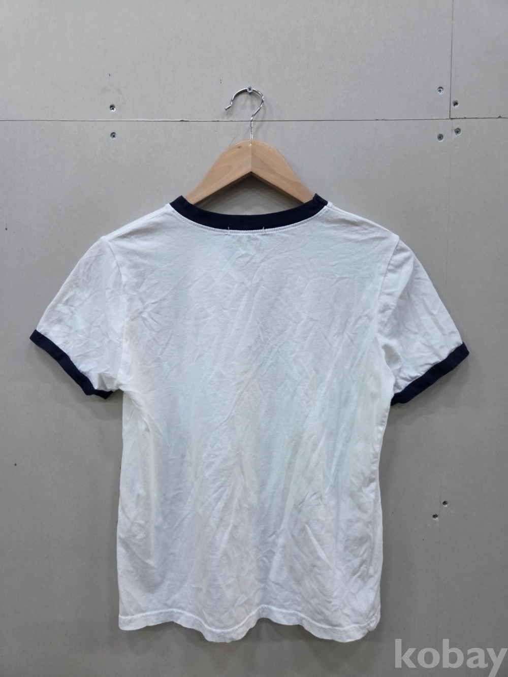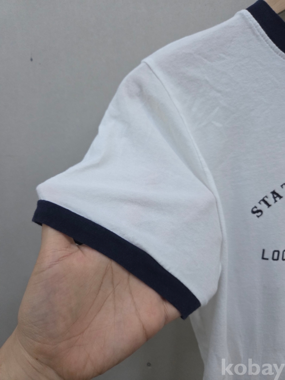 [천원옷장] #60 랩(LAP) 화이트 네이비 배색 반팔 티셔츠 빈티지 레터링 캐주얼룩 55-66
