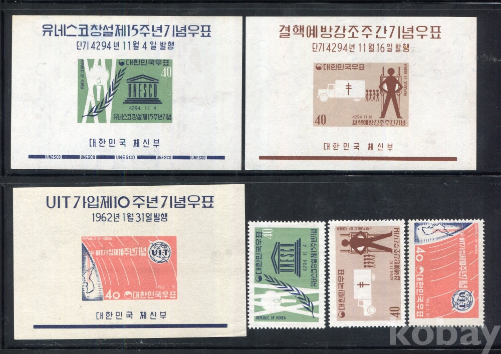 - [시트/우표] 1961-62년 미사용 기념시트 및 우표 3종 8 (All MNH : Mint Not Hinged) : 이미지 참조하세요