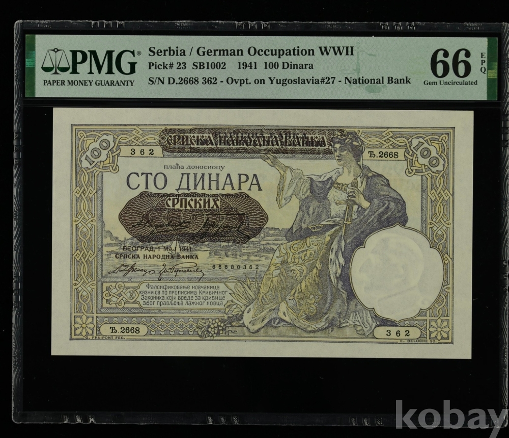 세르비아/독일점령기 1941년 100디나라 PMG 66 EPQ