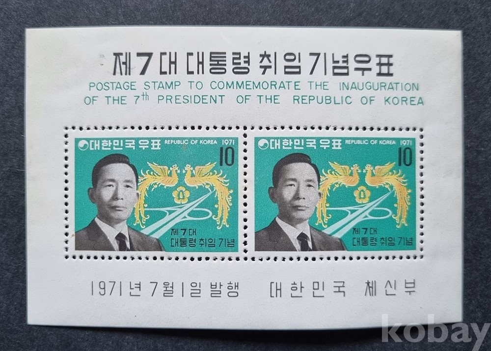 Y-28 / 대한민국 우표 특별 전 (미사용) 제7대대통령취임기념우표=박정희대통령