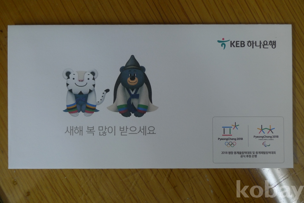 2018년 평창올림픽 마스코트 수호랑 반다비 하나은행 세뱃돈 봉투