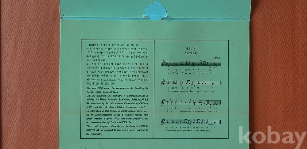 천공 시트가 첩부되어 있으며, 위로 펼치면 아리랑 멜로디가 흘러 나옵니다.