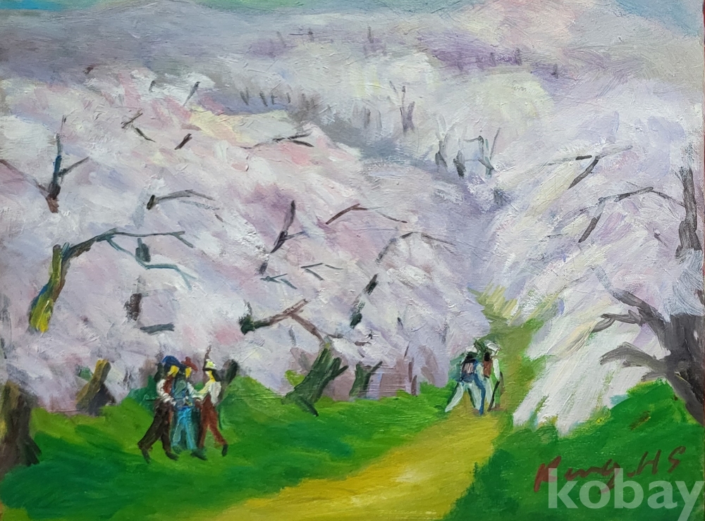 작가의 사인이 보이는 켄버스 유화 풍경화 8호 입니다,