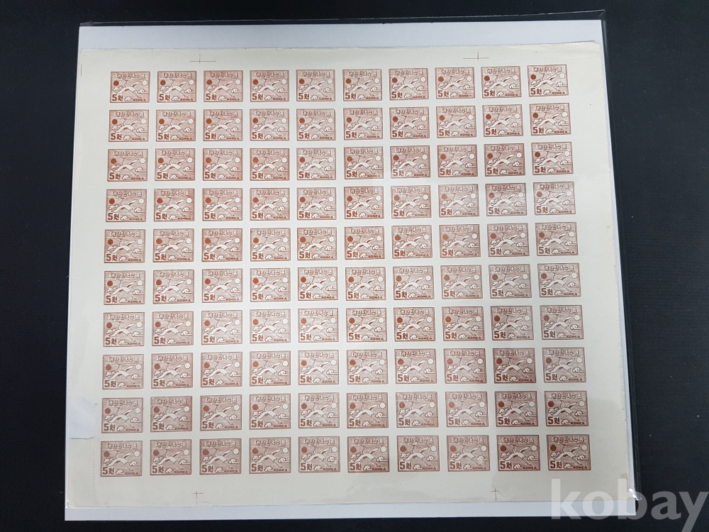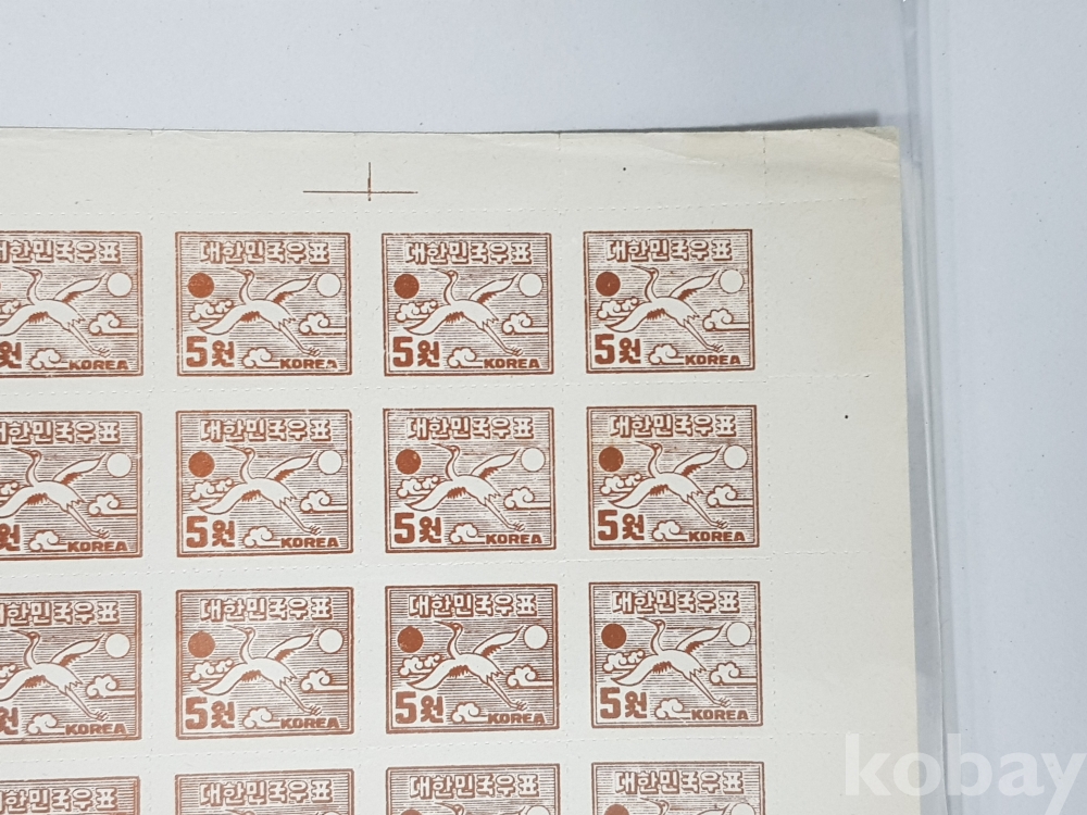 * 1951년 제 2차 원화 보통우표 동양정판사 5원 학 보통우표 전지 입니다.