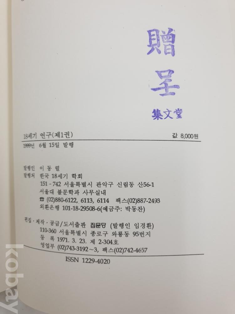 한국 18세기 학회, 집문당, 1999