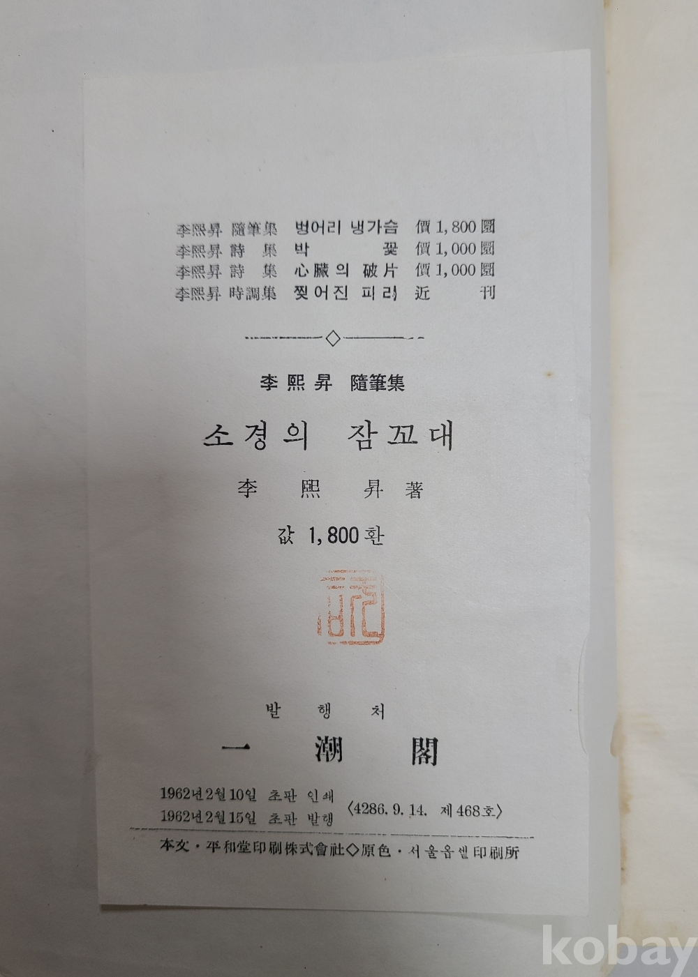 이희승 제2수필집 <소경의 잠꼬대> 희귀 초판본