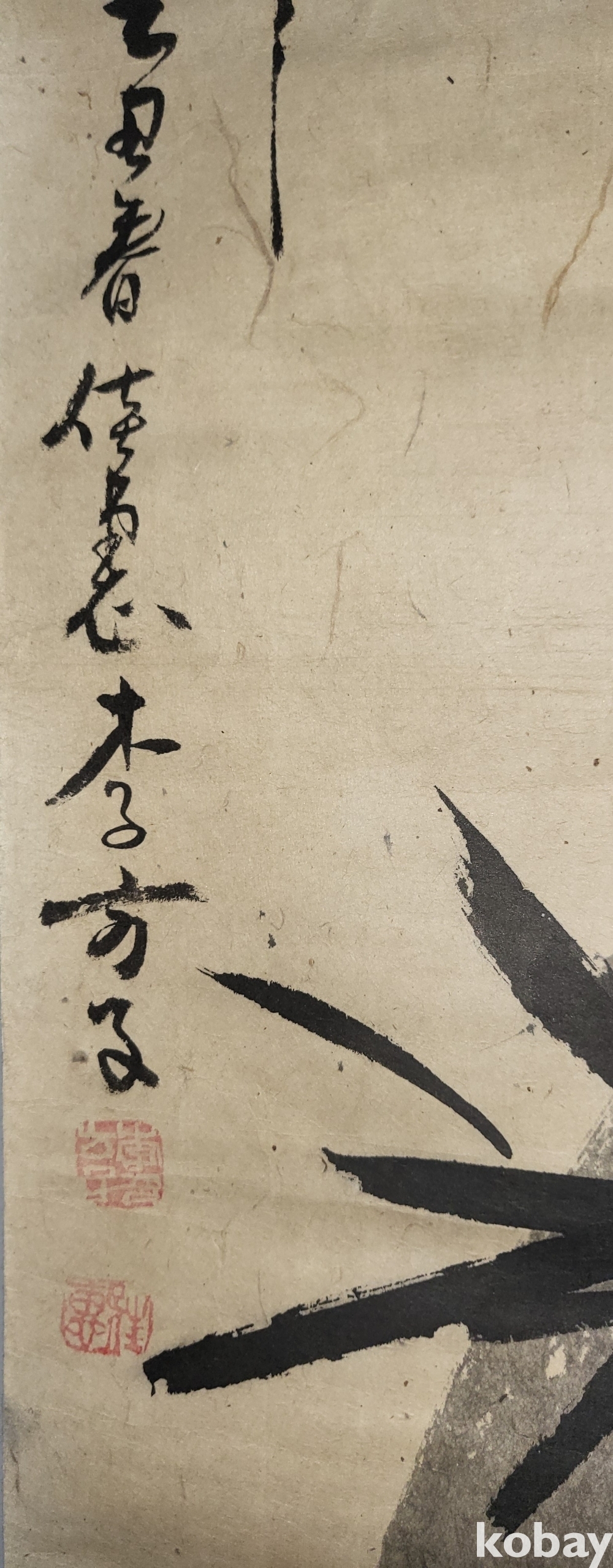 가혜 이방자 ( 佳惠 李方子) 수결이 보이는 고급 장지 바닥에 그려진 대나무 그림입니다,