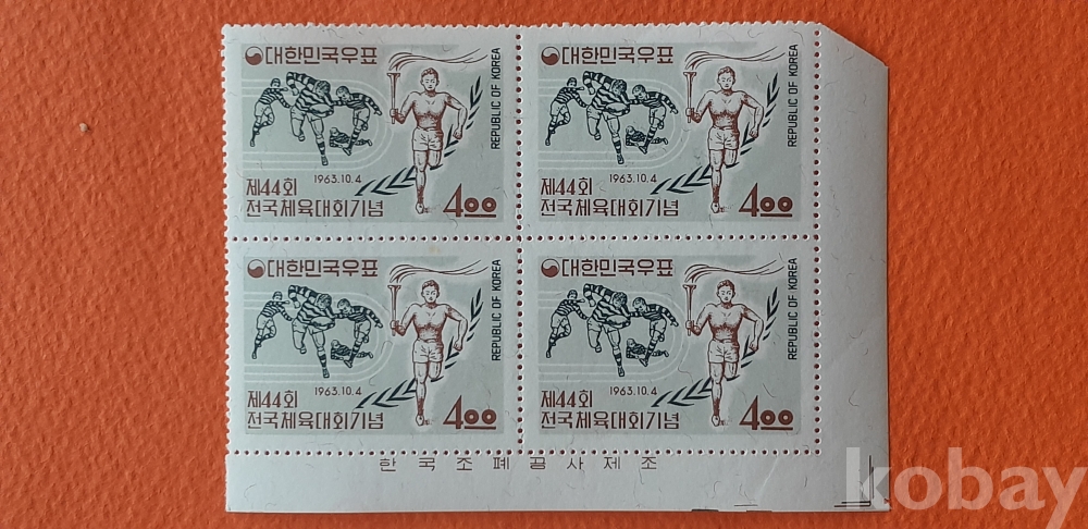 1963년 10월 4일 발행 제44회 전국체전기념 4매 명판 입니다.