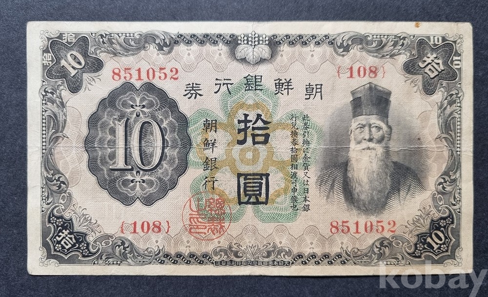X-16 / 조선은행권 옛날 지폐 "십원" (수노인상. 일본내각인쇄국) 1932.6.1~